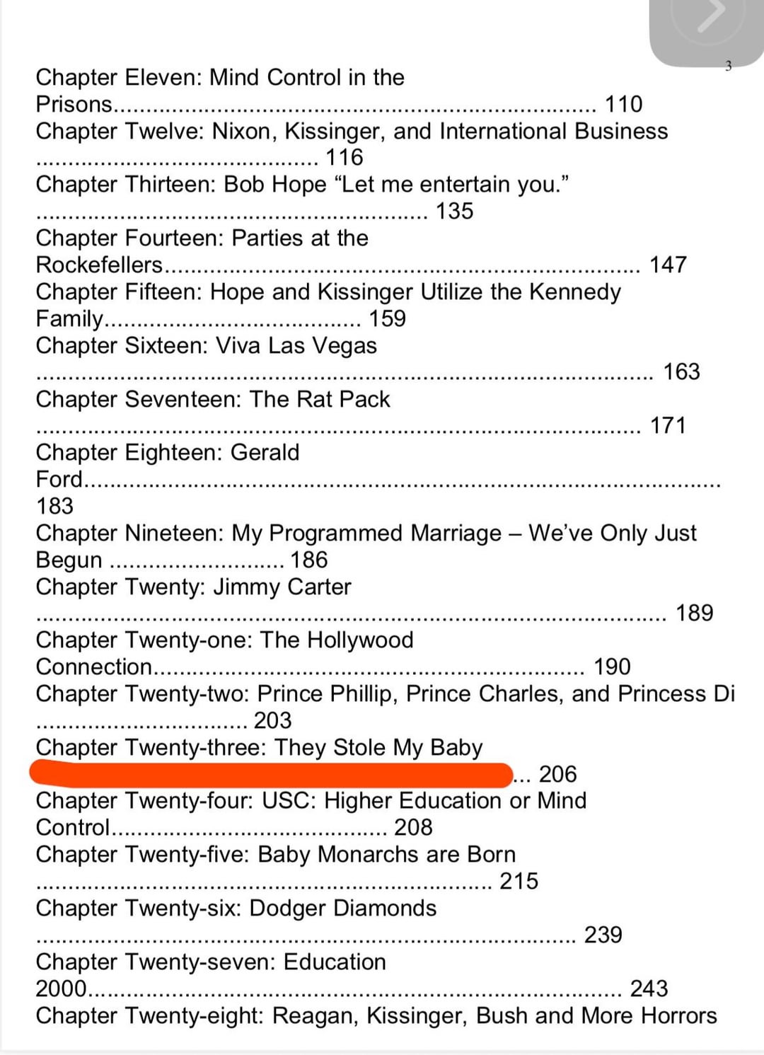 1. “The initial process begins with creating dissociation within the subject, usually occurring from the time of birth to about six years. This is primarily achieved through the use of electroshock (ECT) and is at times performed even when the child is in the mother’s womb. Due to the severe trauma induced through ECT, sexual abuse and other methods, the mind splits off into alternate