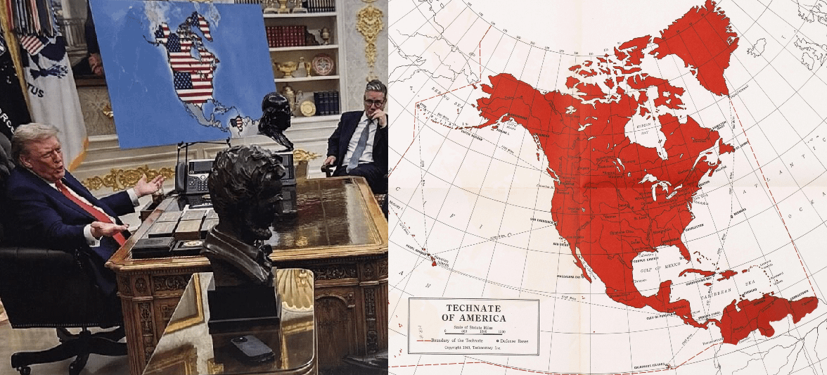 Rule 10 Submission Statement: On January 20, 2026, Donald Trump shared an image of a map in which the United States seemingly controlled Canada, Greenland, and Venezuela. Interestingly enough, it's not too far off the "Technate of America" map from July 1940.