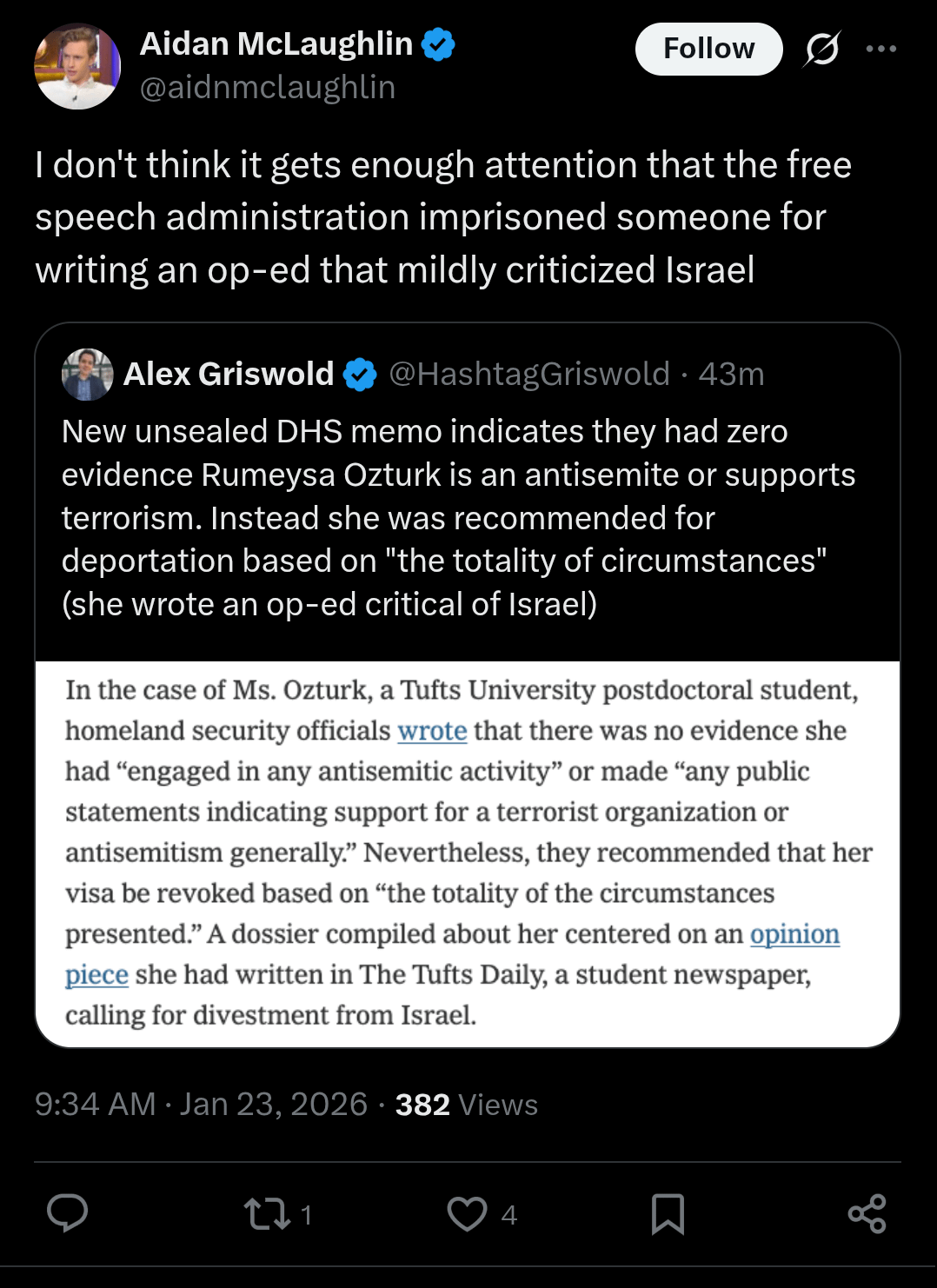 1. SS: in violation of the first amendment, the Trump admin deported someone entirely for criticizing a certain country. Why is this allowed in the US?