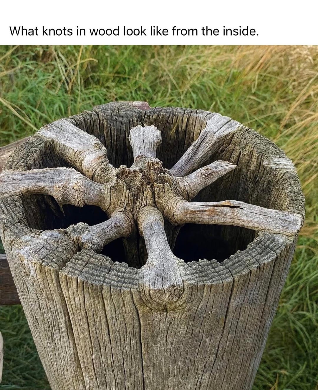 So how was the Tree knot sheered cleanly with beveled edges 300 million years ago? Although I think its comes from a creature similar to a sand dollar the “Spokes” aren’t uniform. Side note that is cool Ive never really thought of the knot in wood as a 3d growth.
