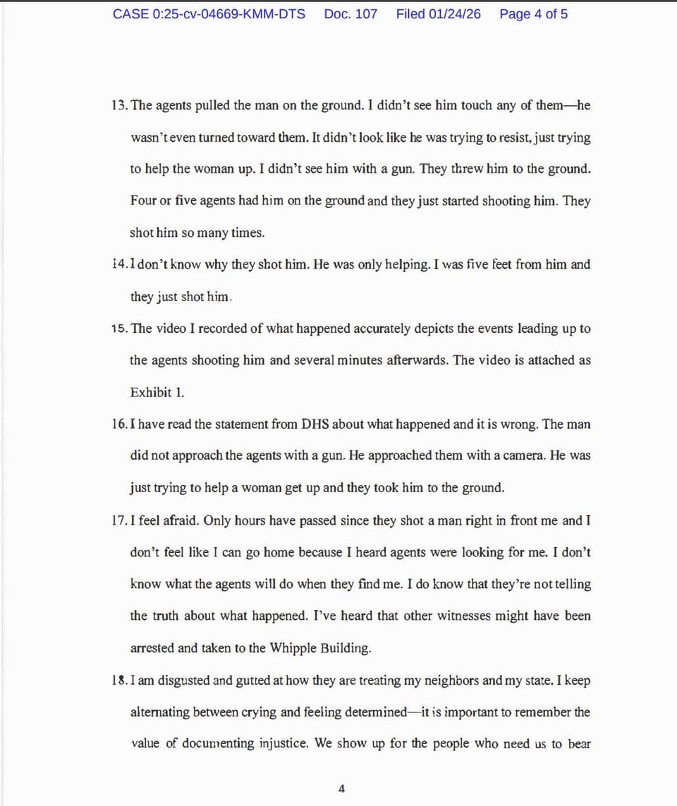 Official statement from one of the women who recorded the events of today’s ICE shooting. (Alex Pretti) Posted by Ok_Profession6244