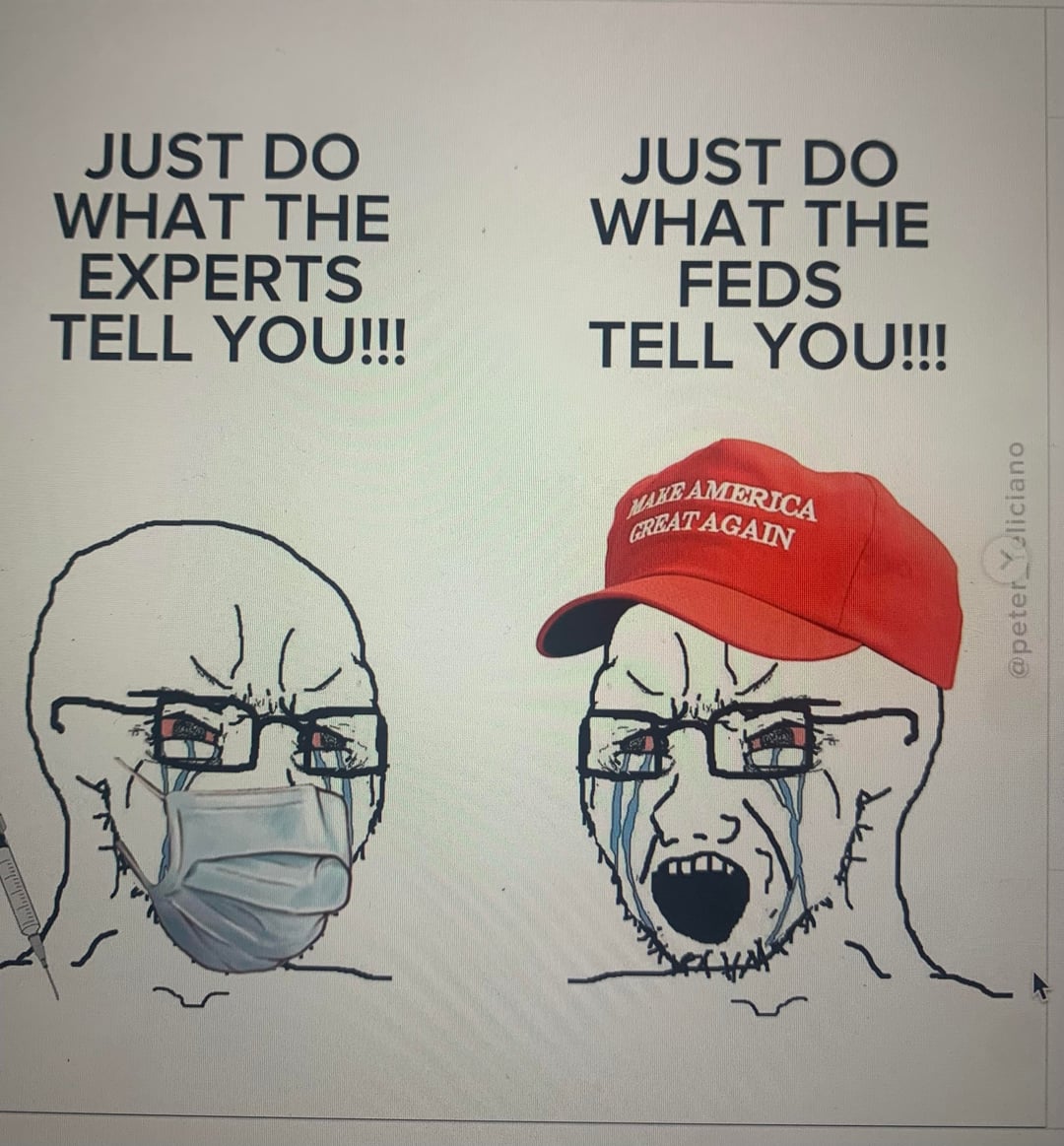 Please tell he how tens of millions of doctors around the globe telling you about proven medical science equates to thugs shooting people in the street. Because I’m very curious.