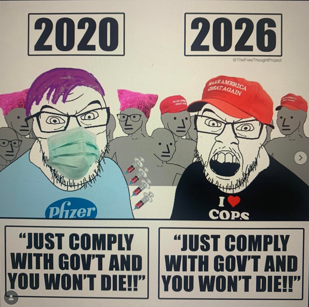 This is all I think when I see everyone hating on conservatives right now. I am not one and I hate trump but I’m also not a liberal but good lord the propaganda and divide has worked so well. At the end of the day as long as you fight each other and not the government you’re as bad as the side you hate! Both have pushed for complete government control when it suites them. Like you’re not stupid enough to believe it’s all own side are you?