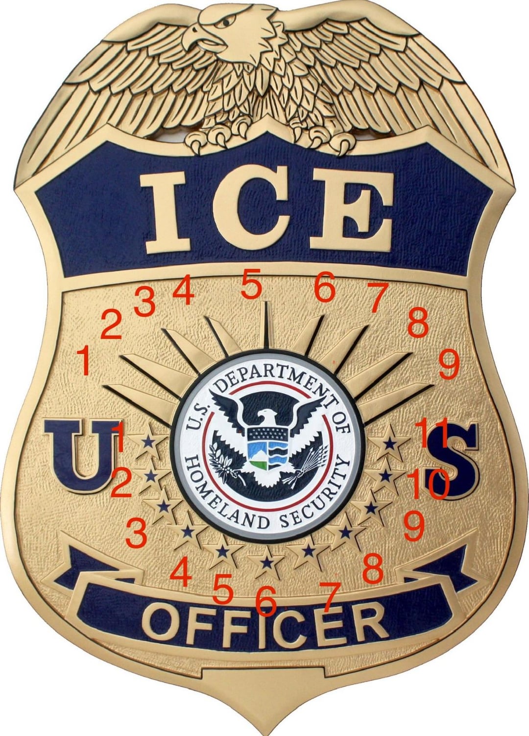 ICE badge displaying 9 rays and 11 stars (pentagrams).