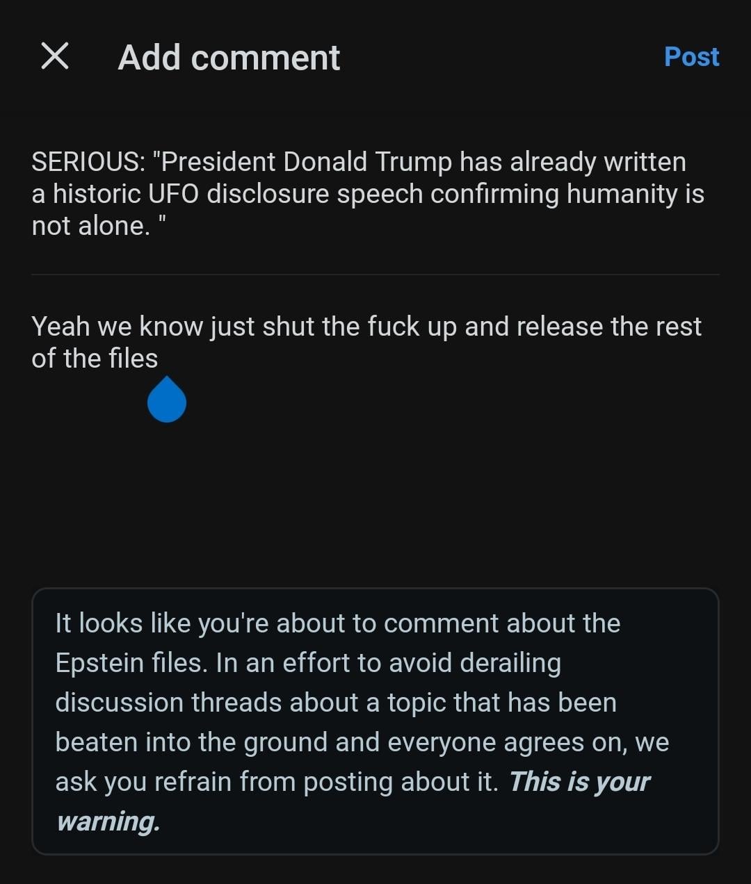 iCumMayo on January 30, 2026 6:12 am **This is your final warning** Ya like I give a fuck. *posts anyways*