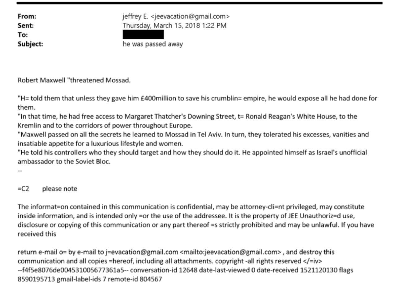 Epstein sent this to someone, no clue if this is old news but from what I heard everyone just speculated, wonder if there is evidence of Epstein being a mossad agent.