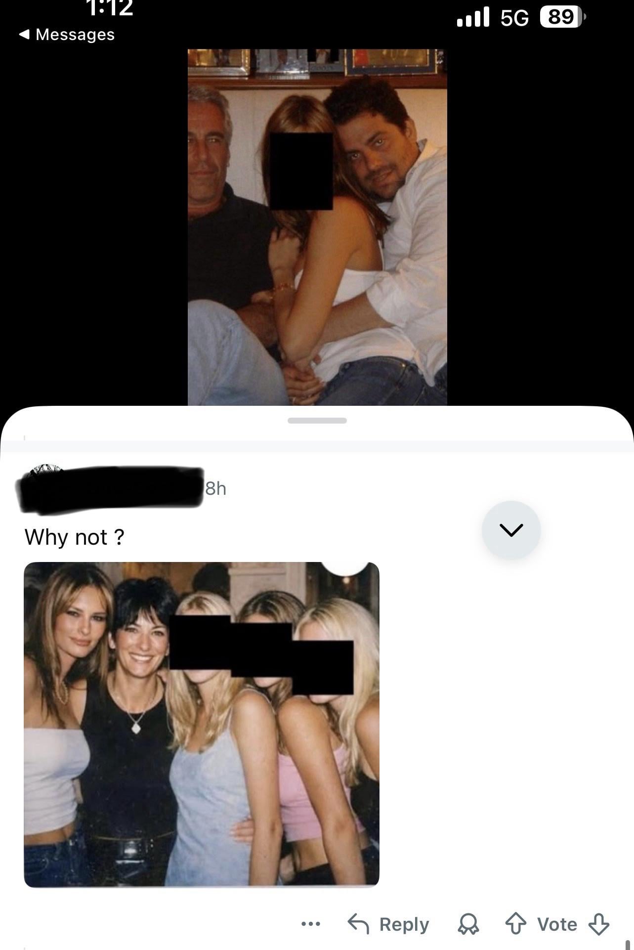 Someone posted the top photo on another sub saying that is the director of the movie MELANIA. I immediately saw the narrow head and pin straight hair on the redacted individual and thought that was Melania herself, then someone posted this photo of her and Ghislane and you can see she is wearing the same outfit.