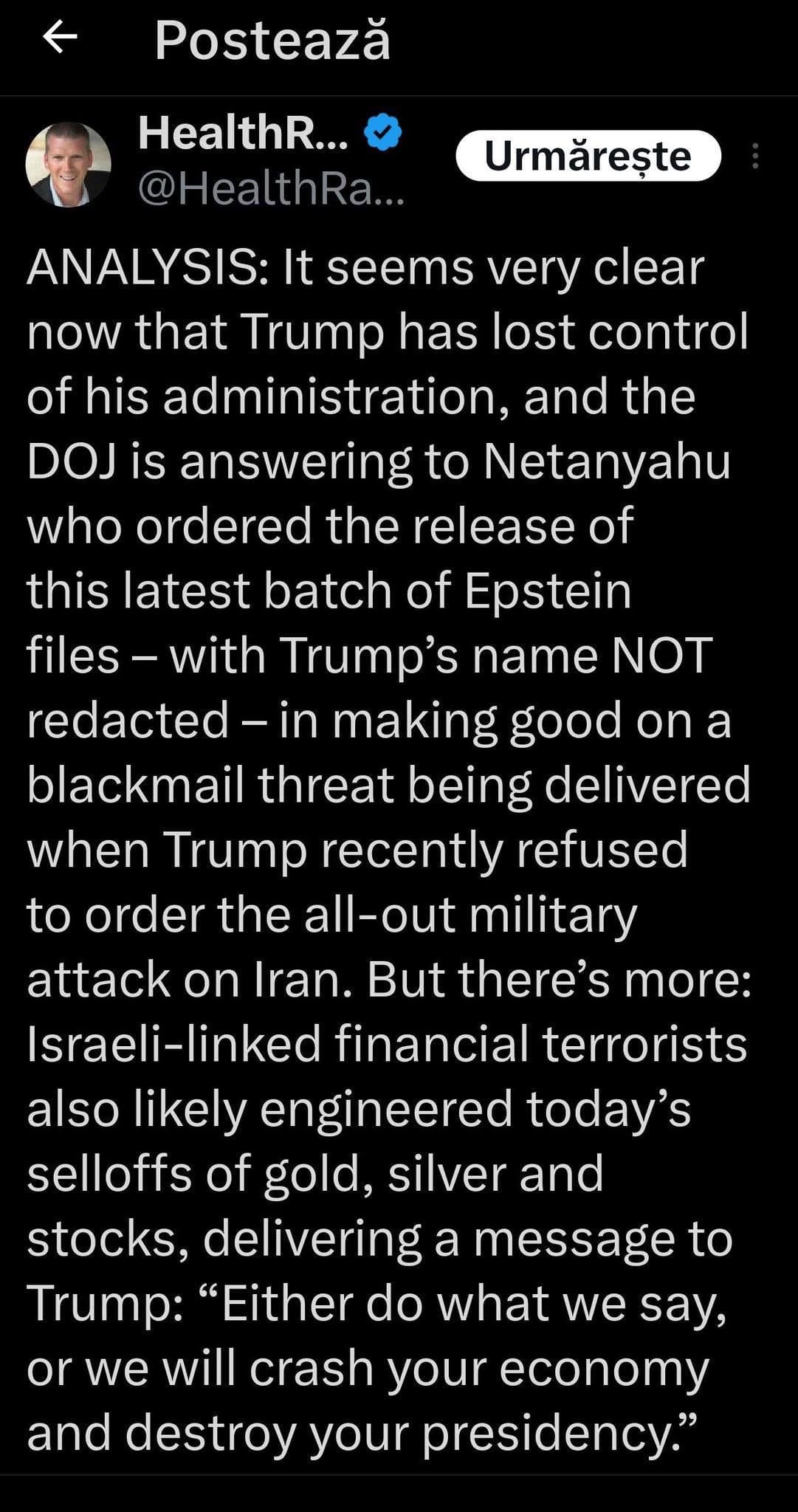 retixi5252 on February 1, 2026 2:16 pm What if Trump orders the compete destruction of Israel because of this…?Â