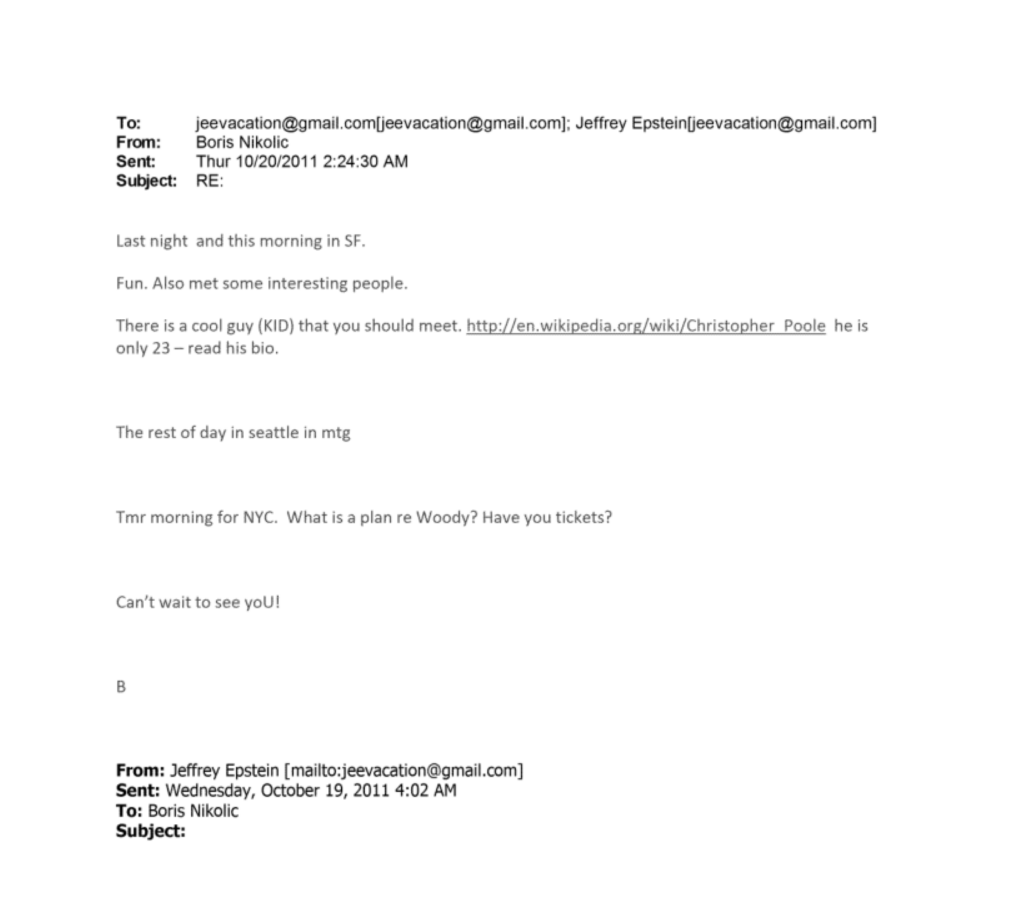 Turns out, the founder of 4chan and /pol/ was friends with Jeffrey Epstein.