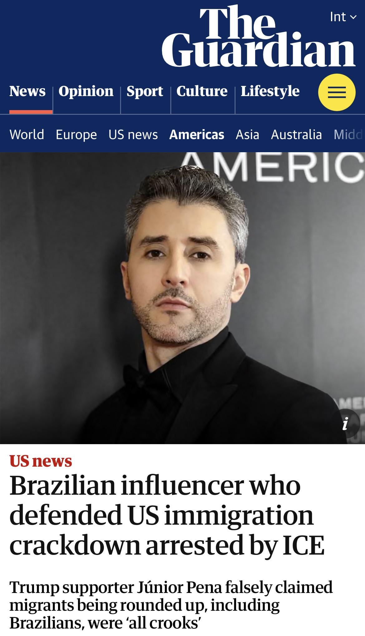 Source: https://www.theguardian.com/us-news/2026/feb/02/rightwing-brazilian-influencer-junior-pena-arrested-by-ice Posted by Freewhale98