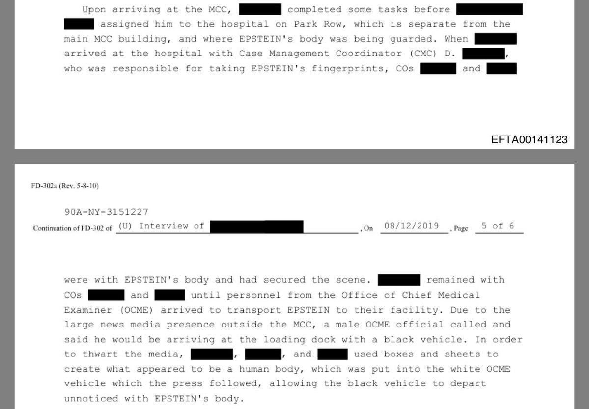 FBI document found in Epstein files discusses how a decoy dead body was used after Epstein supposedly died