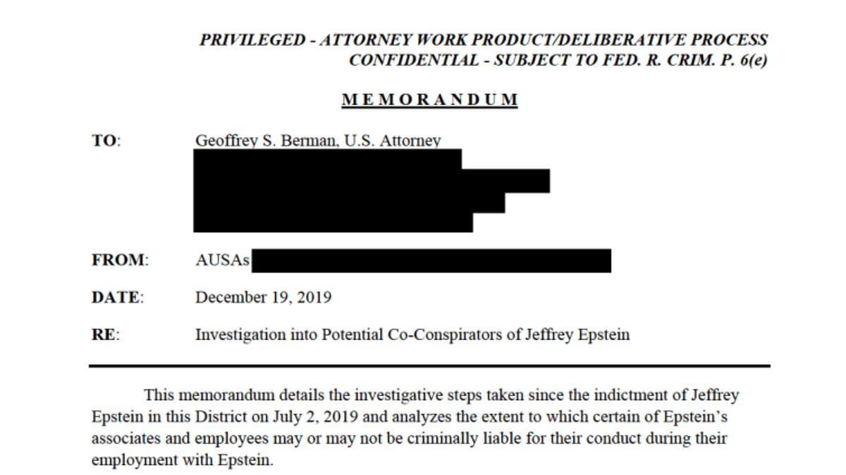 DOJ Deleted an Epstein Prosecution Memo About Possible Co-Conspirators. We Saved It. An 86-page DOJ memo detailing possible Epstein co-conspirators vanished after reporters asked questions. But we saved a copy.