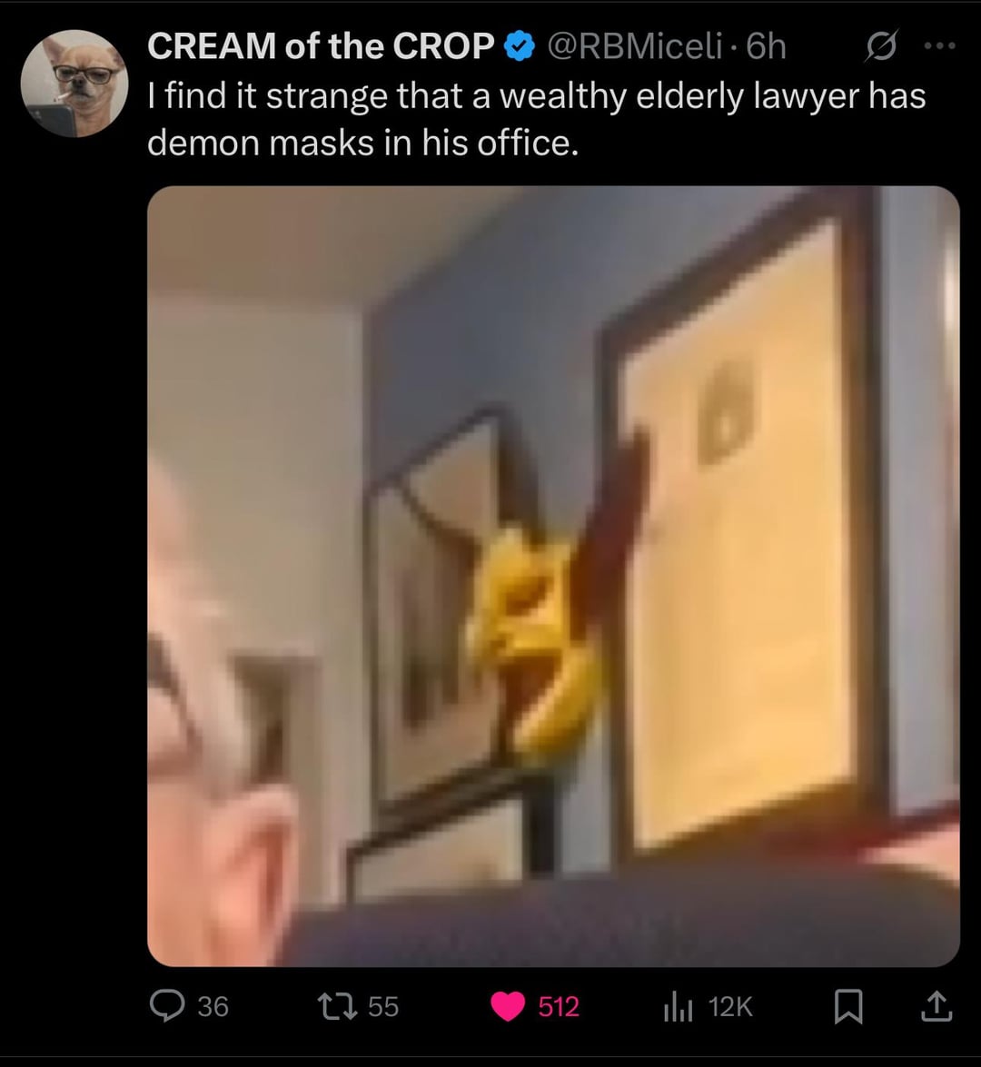 Let’s be honest, there is no significance in that mask. People just don’t like what he’s saying. I do think there needs to be more “linkage” between all the accusations. Epstein is a pedophile. He was convicted of that in 2008 or something. So it wouldn’t come as a surprise if it ended up he didn’t stop after his prison release.