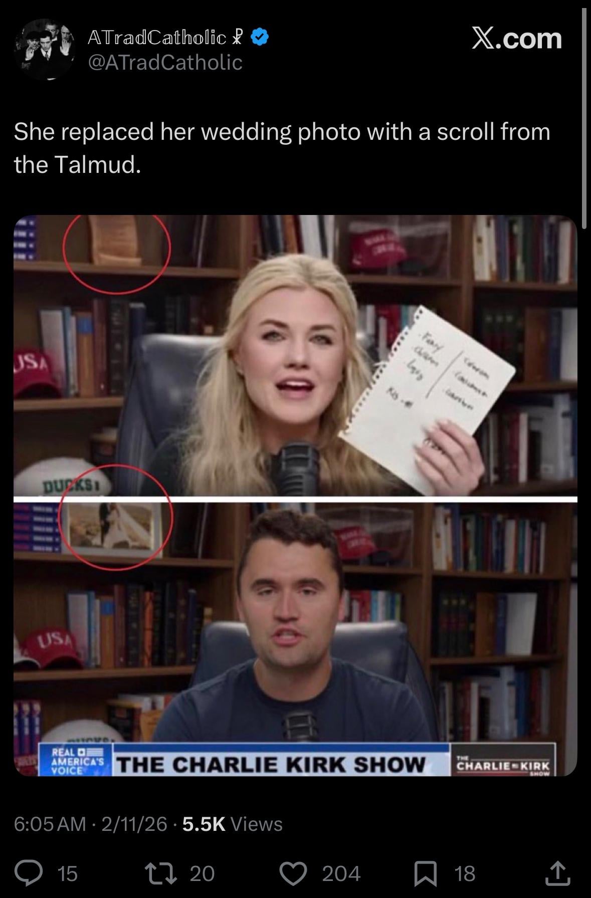 Submission statement: Charlie kept the photo as a celebration of his marriage to her, to show the world every episode he valued his love and life with her. She is erasing Charlie from his fan’s existence, and replacing it with totalitarian Zionism.
