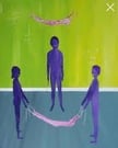 Disassociate from your body and float above it watching it happen to you. Is that what the floating people above the laying down people represent