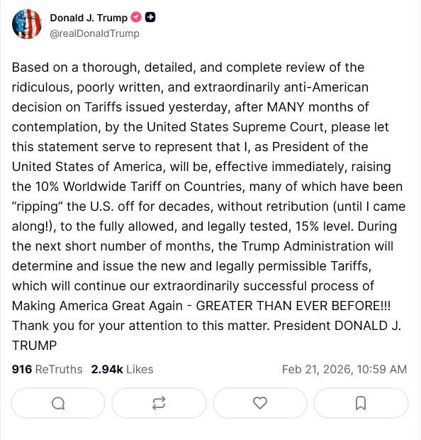 (*might literally be a meme b/c until there is an EO, this is just more raging before his actual EO-backed tariffs take effect on Feb 24 – which may or may not be TACO’d to fit the theme of TACO Tuesday)