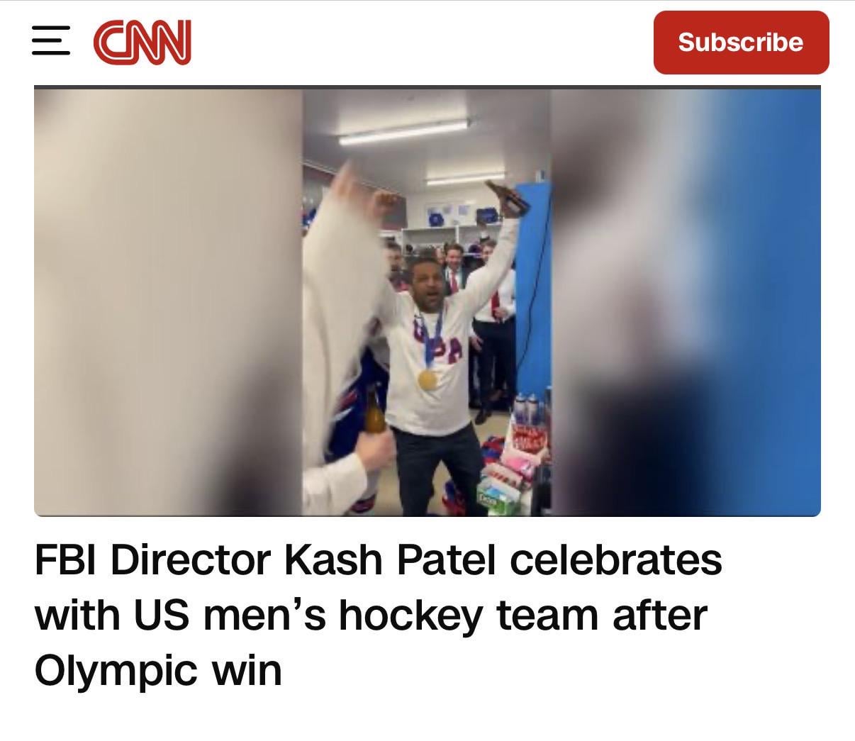 And, the US Olympic team is celebrating only their third gold medal in hockey ever (hOcKeYyYY iS oUr SpOrTTtt tHo), and they chose to celebrate it with Kash money Patel?