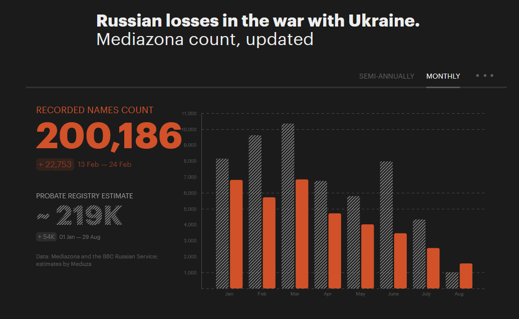 I think mediazona’s methodology is based on eulogies in Russian local newspapers and whatnot, so this is a low bound
