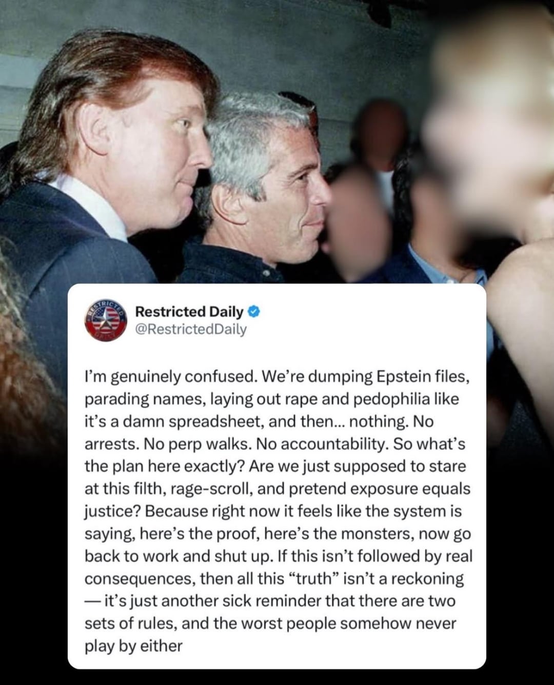 Hollywood’s muted, non-response to the Epstein’s Files is strange. They stood up against Weinstein for hurting women, they frequently highlight children’s charities and international adoption, they highlight women’s rights. But not a peep about Epstein/Maxwell? They pivot it all to Trump — OK, so why wasn’t he arrested based on available evidence in 2020~24?