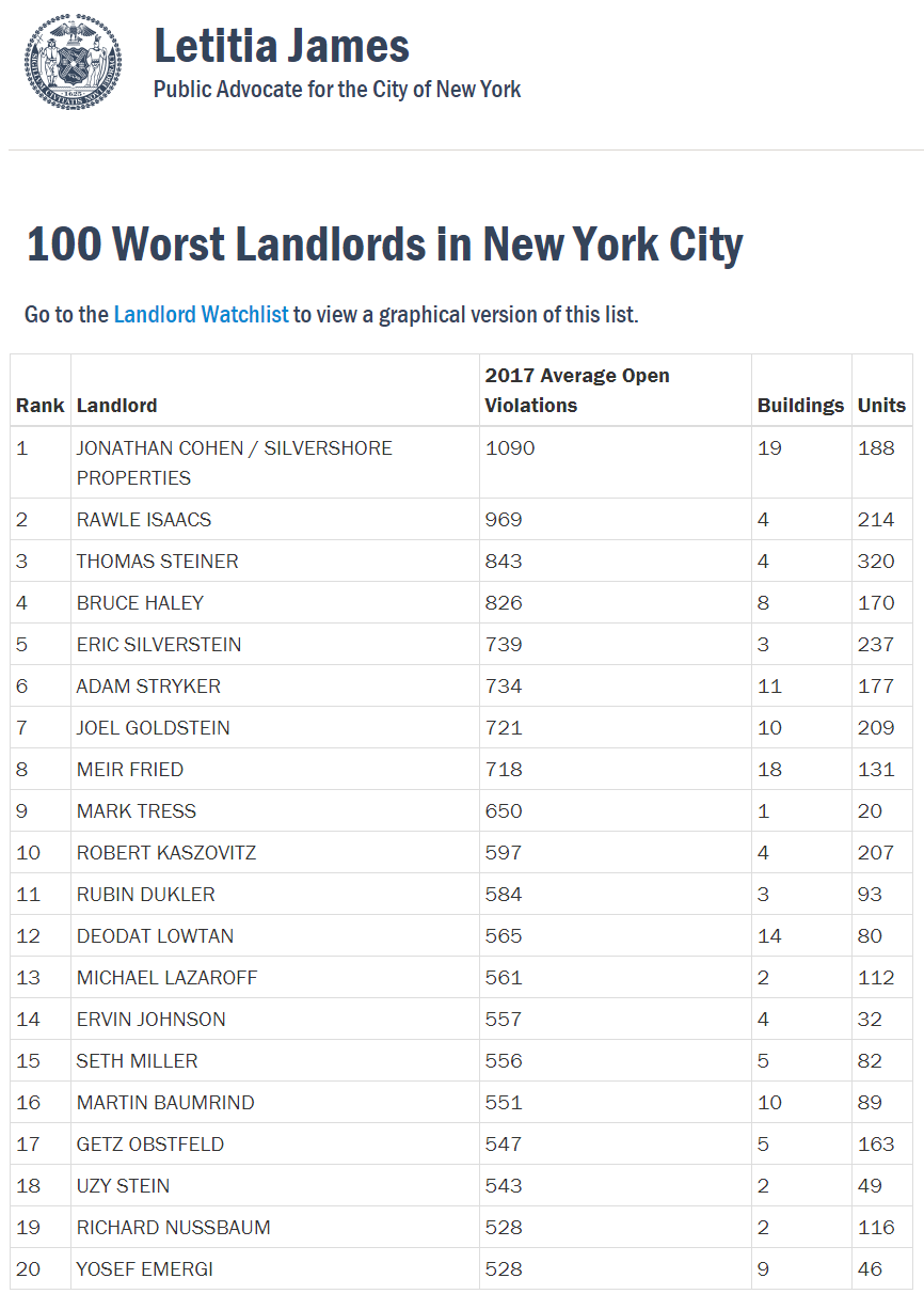 Wouldn’t Mark Tress be topping that list? Only 20 units and still racked up 650 open violations. That’s crazy! that’s an average of 32.5 violation PER UNIT!!!