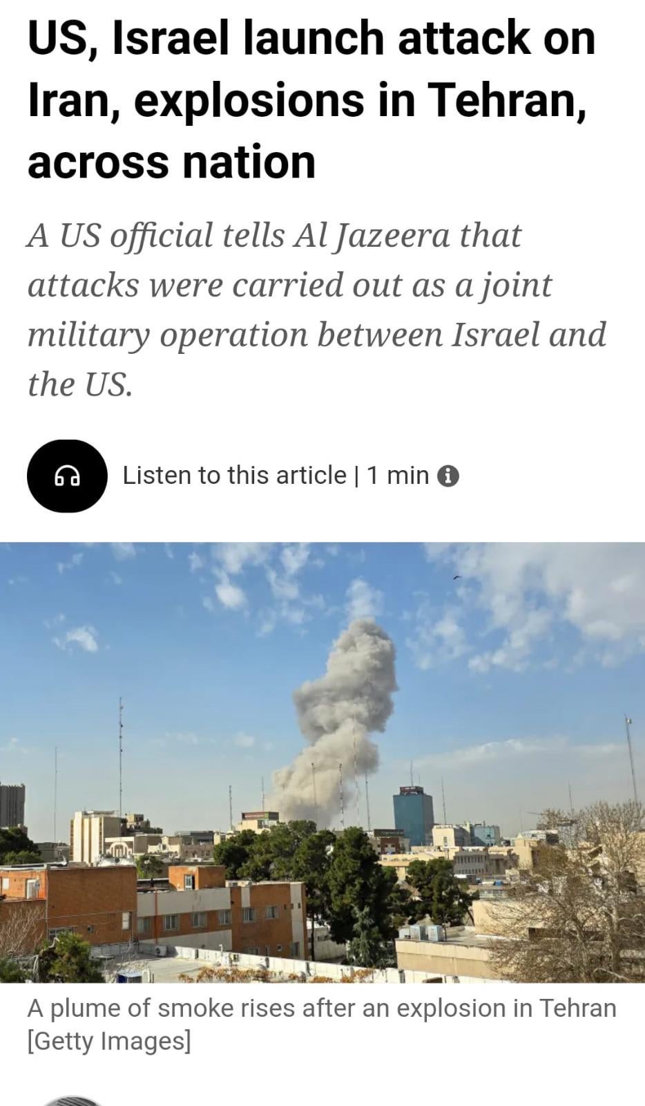 Has anyone got any information on what’s been hit so far? Any Iranian retaliation as of yet?