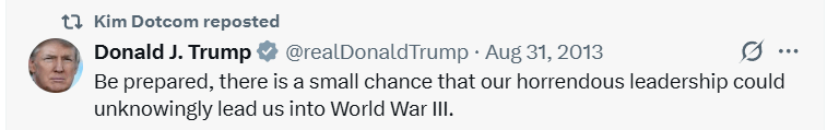 Wasn’t he referring to a potential war with Iran, in this tweet, as well?