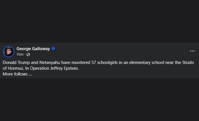 Galloway says Trump and Netanyahu have murdered 57 schoolgirls in ‘Operation Jeffrey Epstein’