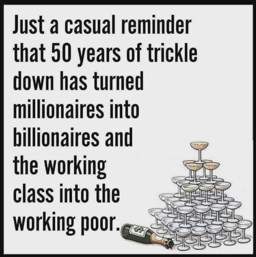 Submission statement: Trickle down economics is a 50-year conspiracy to re-enslave the working class.