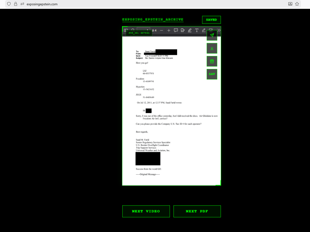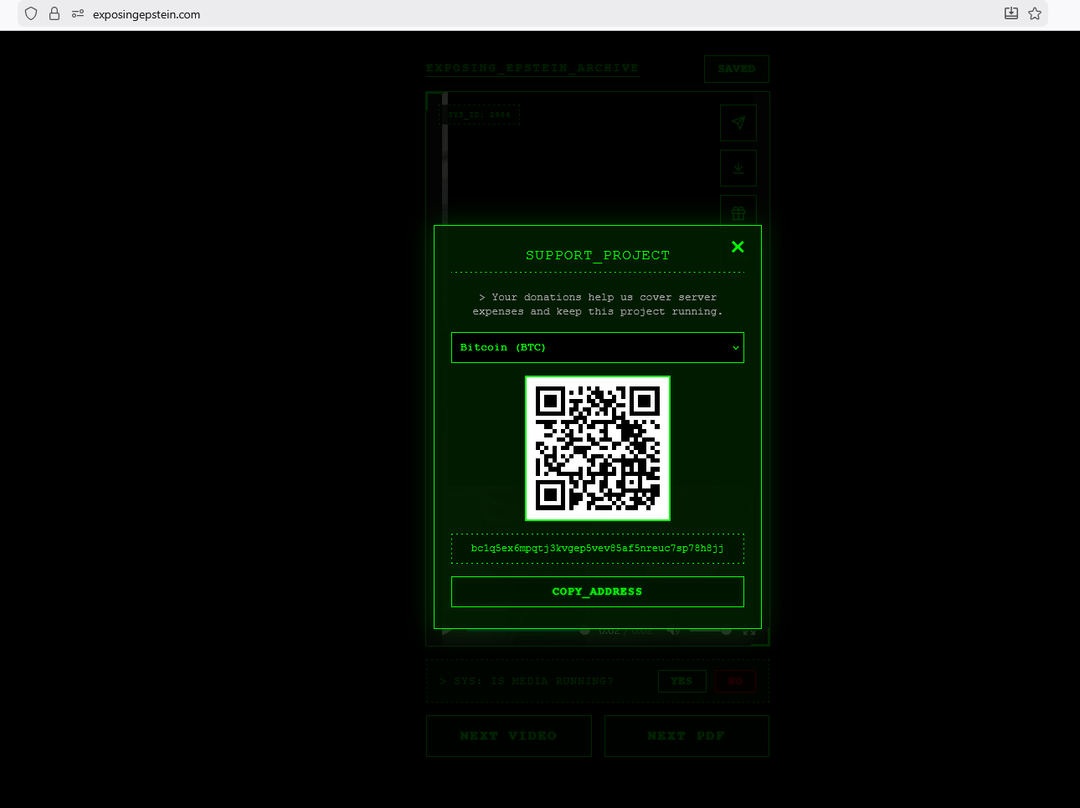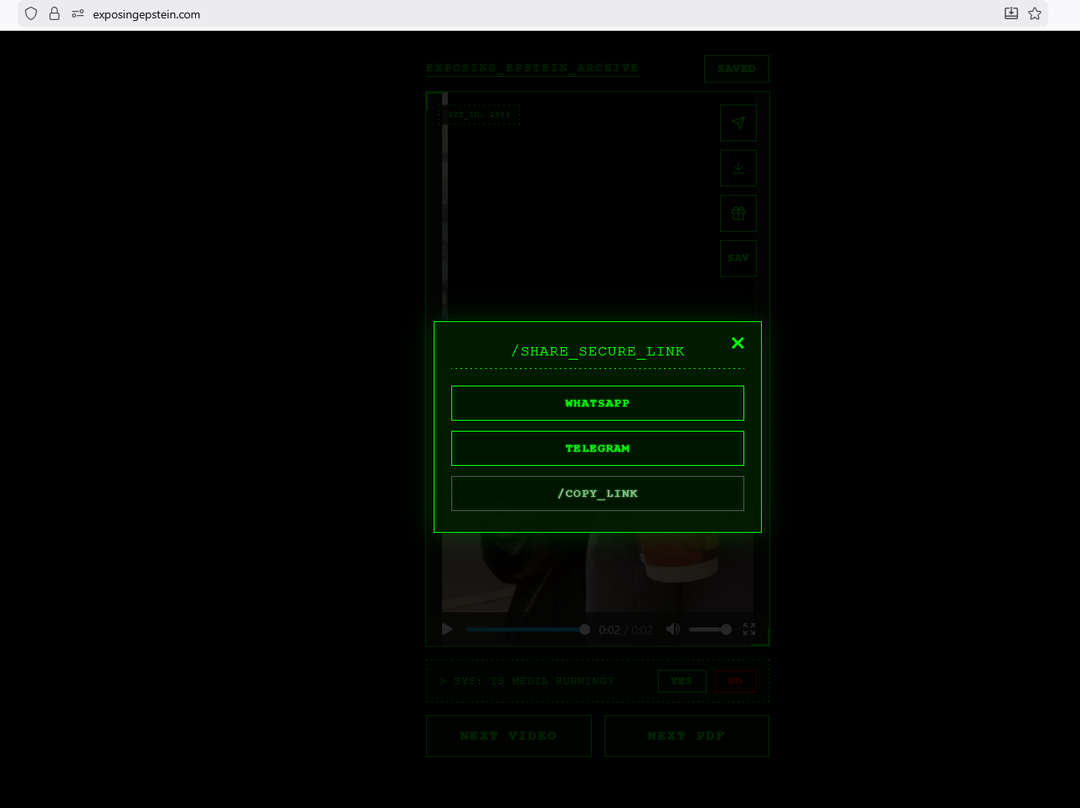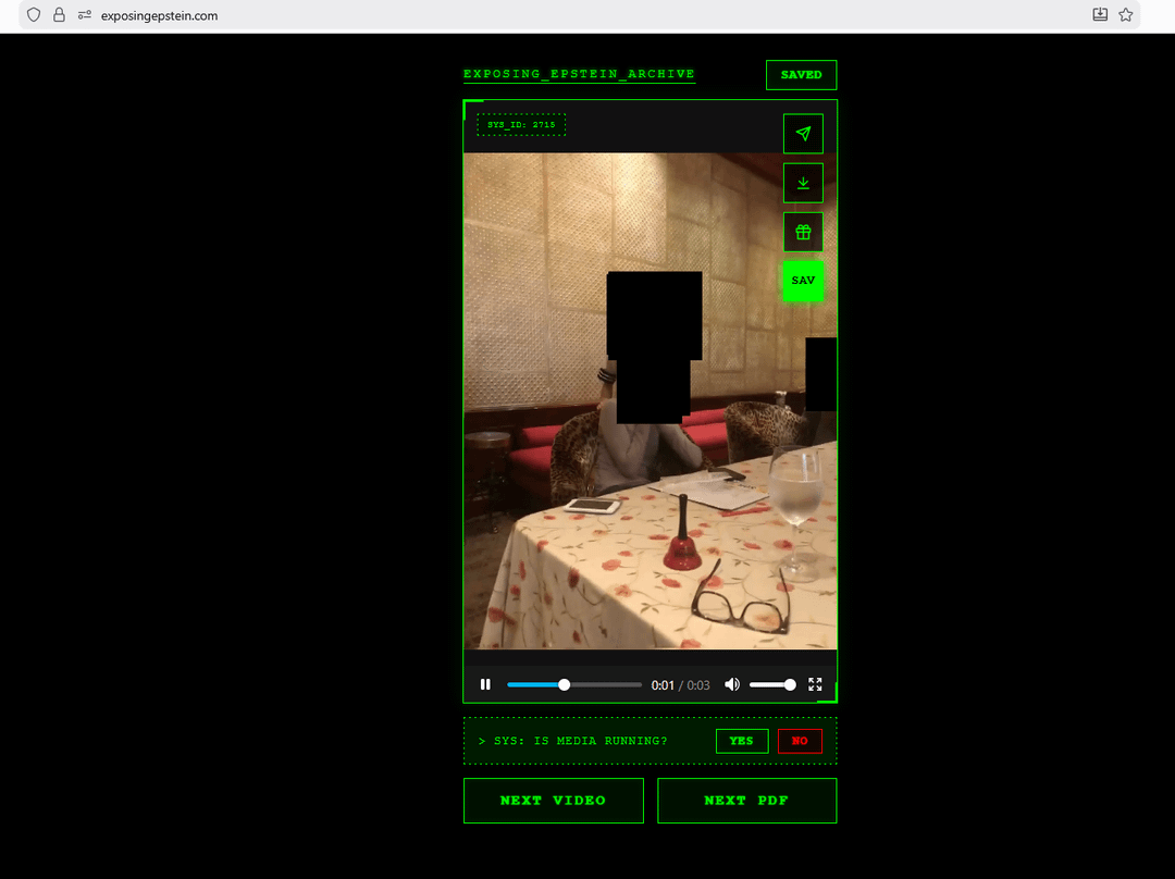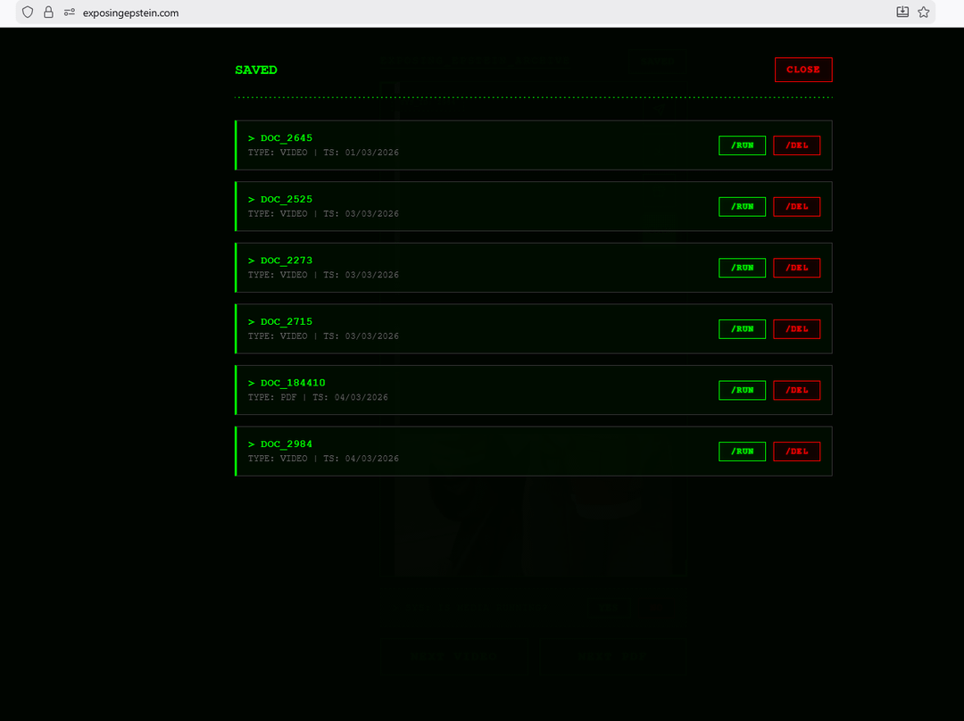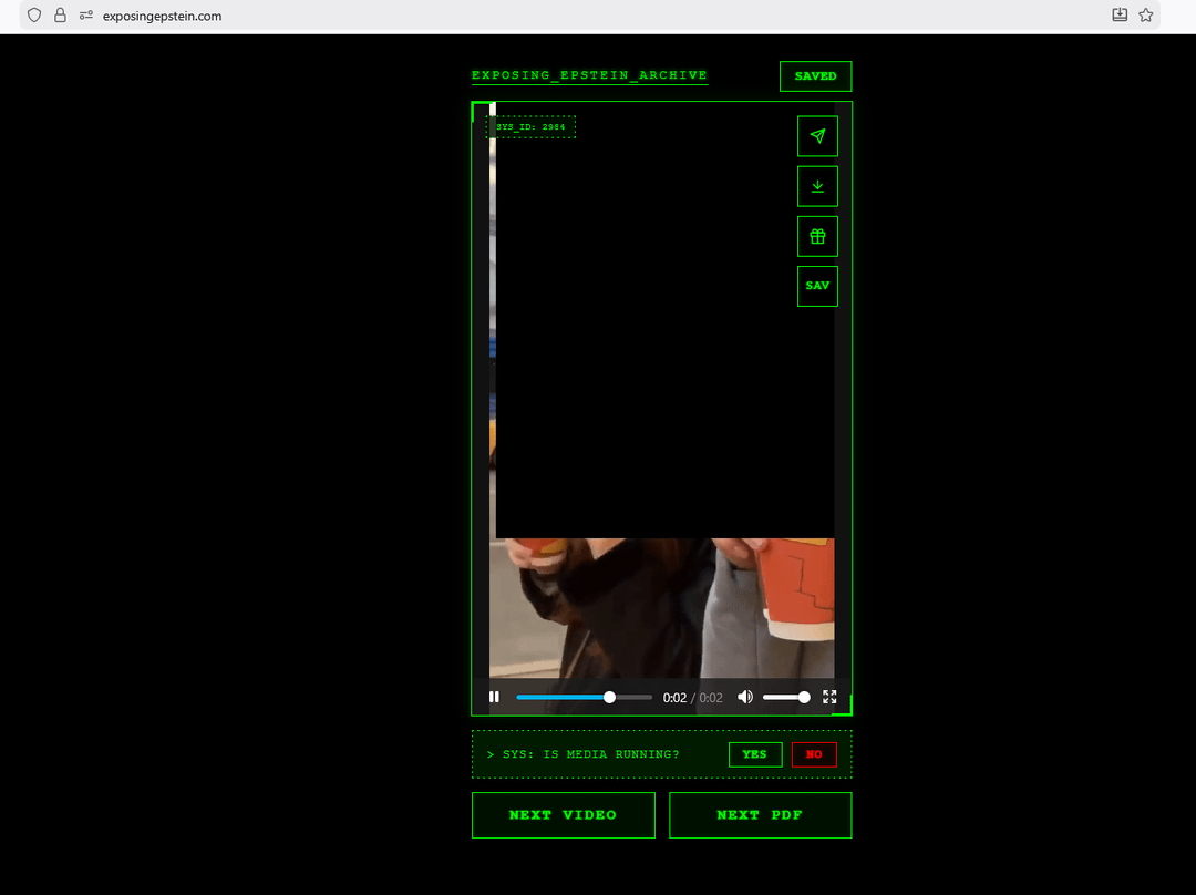 The site is a free aggregator with no ads and no paywall. We don't host any files on our servers. When you click "NEXT VIDEO" or "NEXT PDF," the site searches and pulls documents directly from the U.S. Department of Justice servers (justice.gov/epstein). Everything you see is publicly available government material — we just built an interface to browse it more easily.