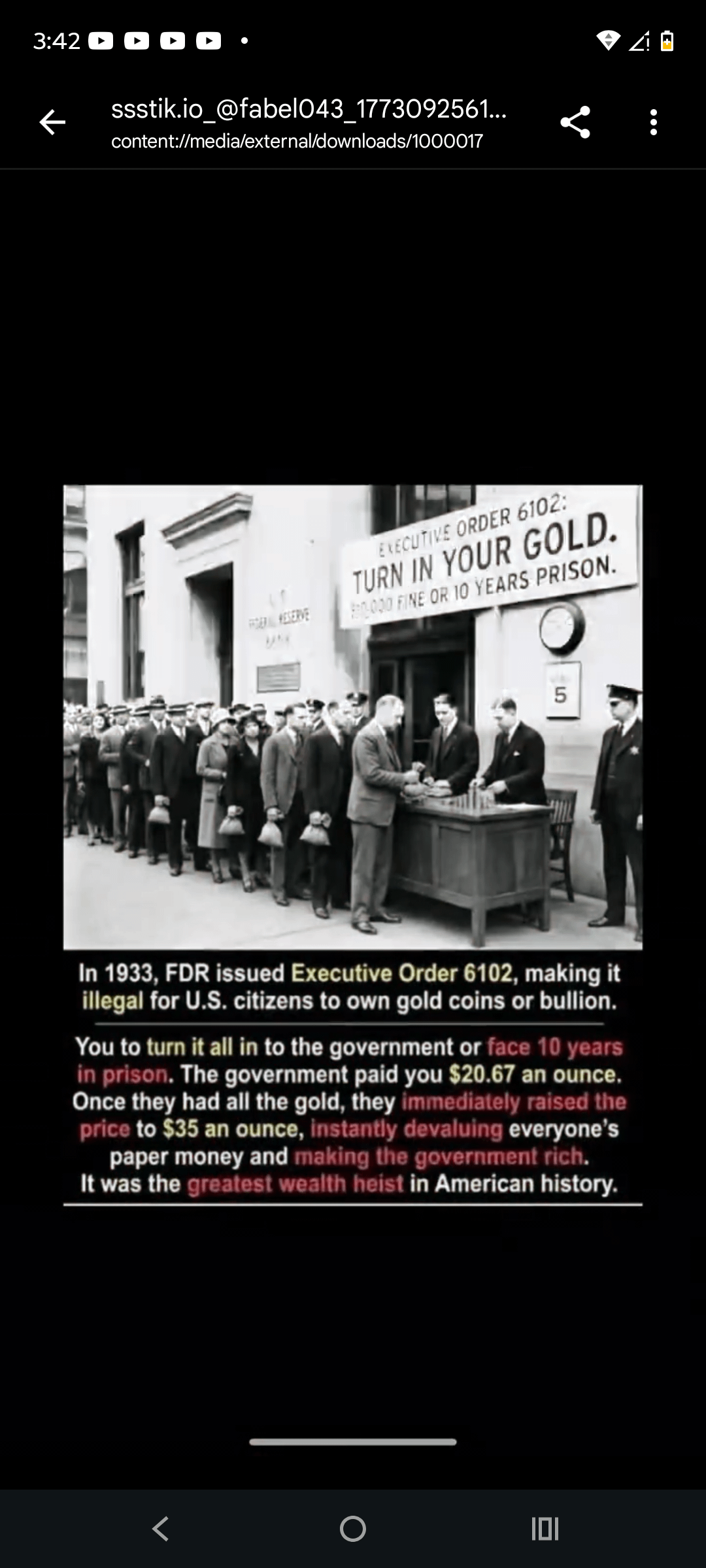 After FDR forced everyone to turn in their gold to the federal reserve they tripled the price of it, it was stolen from the average working man so that the international banksters could rip them off once again, creating the federal reserve just wasn’t enough for them.