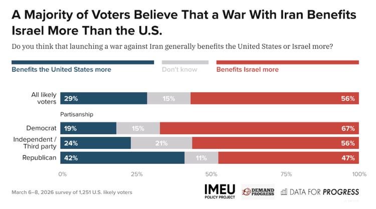 The Majority of Americans Believe War Against Iran Benefits Israel More Than US