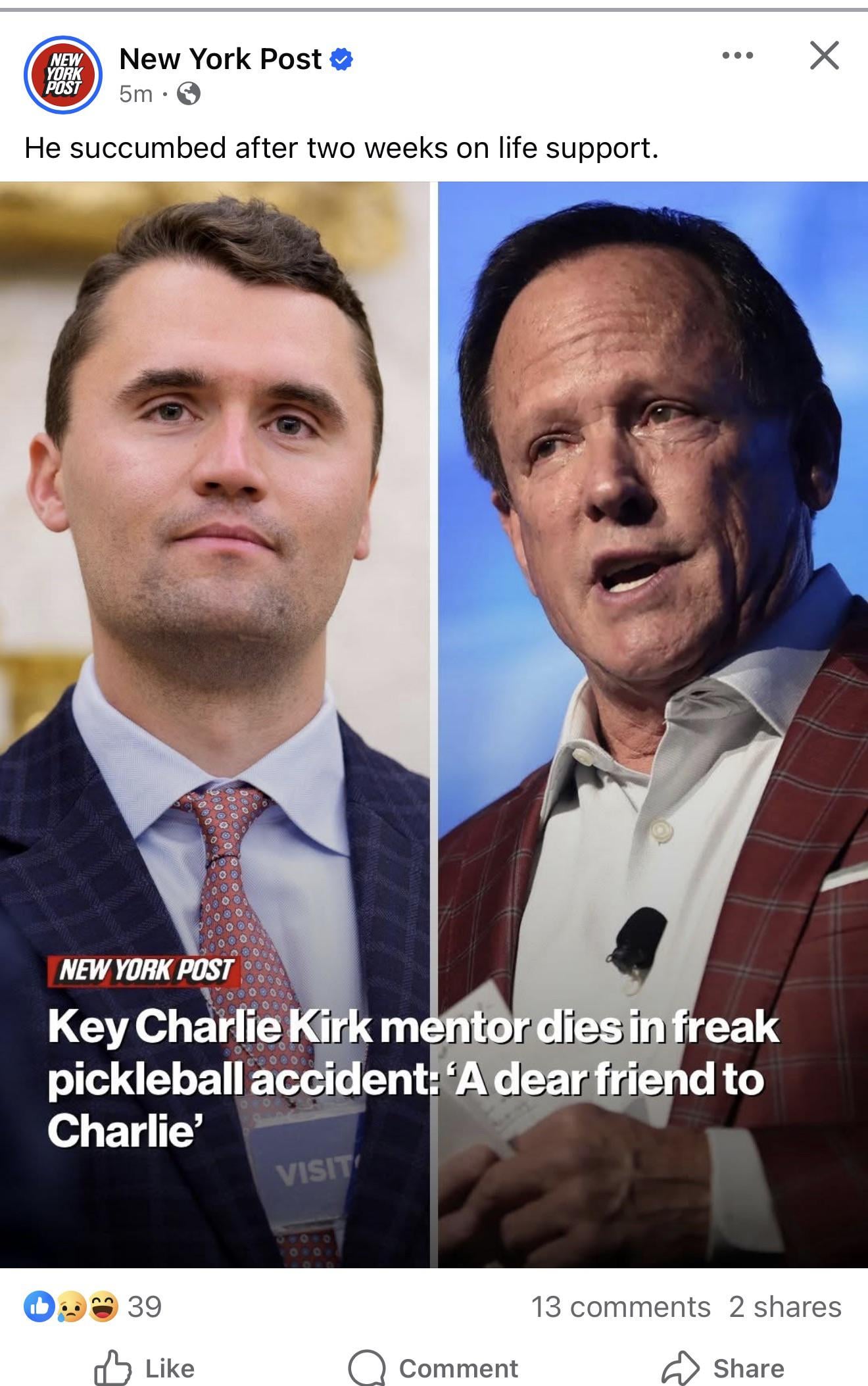 Texas businessman Jeff Webb, described by Kirk’s Turning Point USA as a “visionary who helped shape generations of young leaders,” **died Friday at the age of 76** — two weeks after suffering a serious head injury when he fell playing the popular sport, Cheer Daily reported.