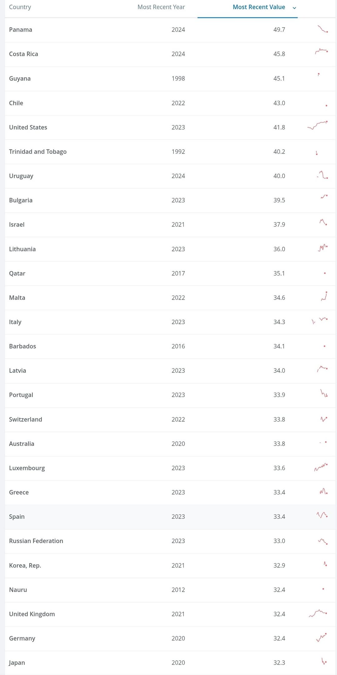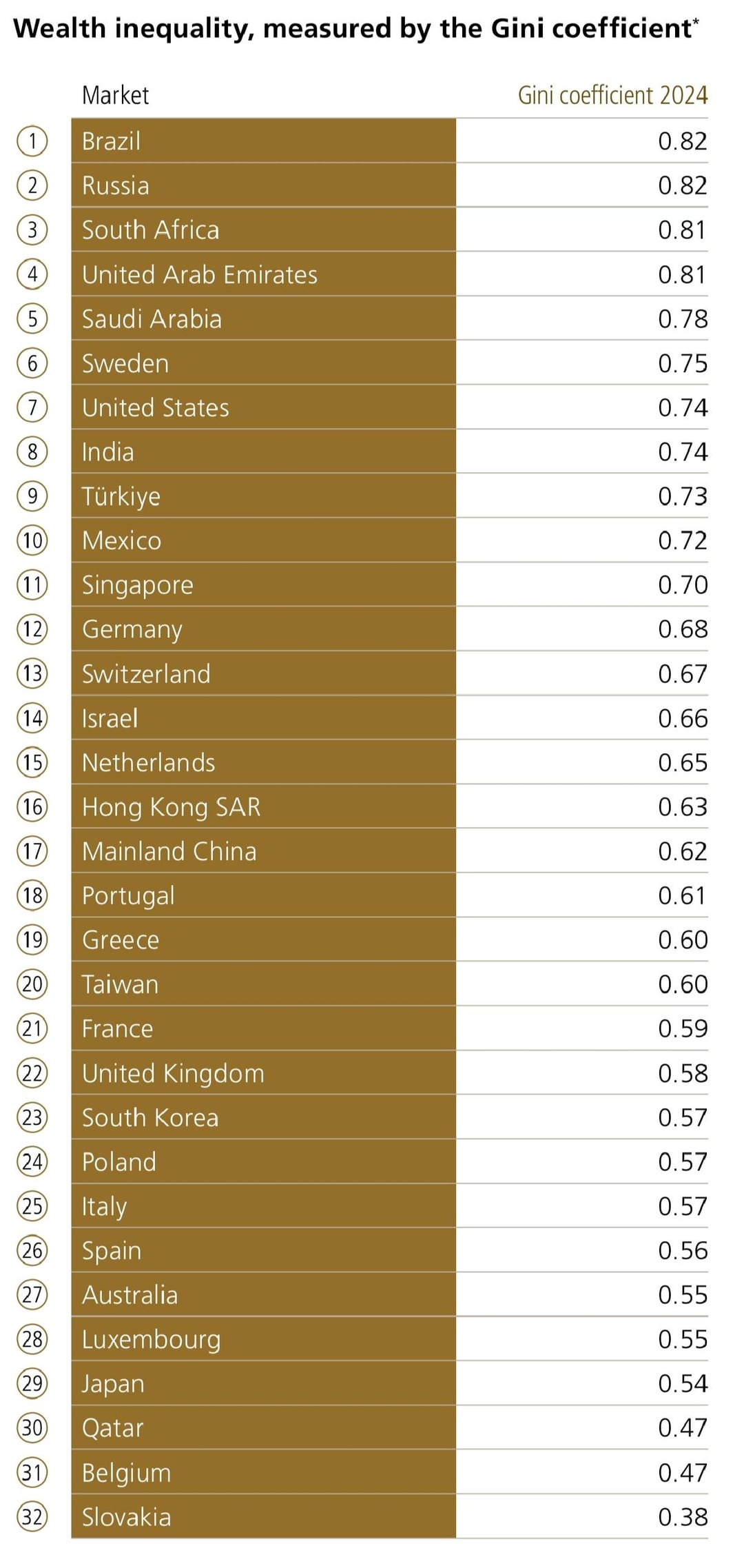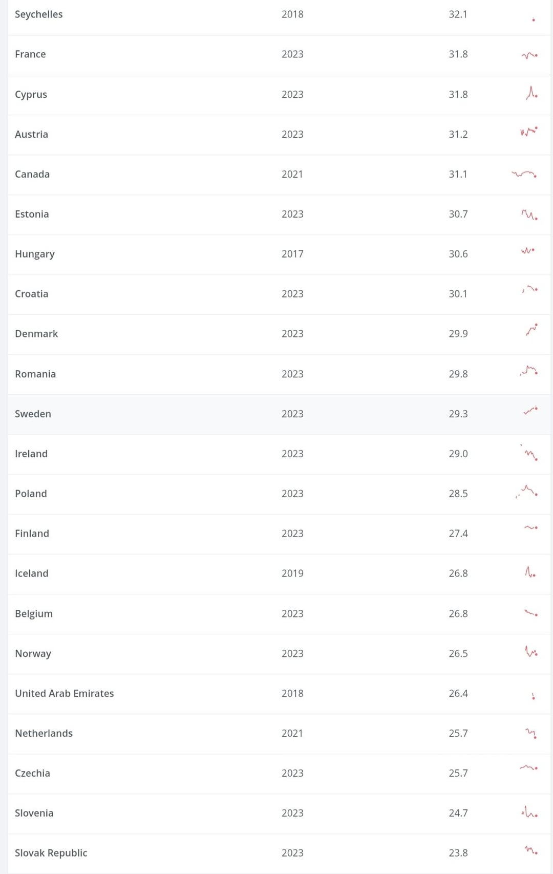 The former measures wealth inequality, with Sweden scoring 0.75 out of 1.00, the 6th largest score after Brazil, Russia, South Aftica, Emirates & Saudi, above the US, India, Turkey, Mexico & Singapore, while the latter measures income inequality, with Sweden scoring 29.3 out of 100.0, the high-income economy with the 12th lowest score after Slovakia, Slovenia, Czechia, the Netherlands, Emirates, Norway, Belgium, Iceland, Finland, Poland & Ireland, you know, what one would expect from Sweden lol you can take a look at these World Bank-high income economies ranking-by-Gini coefficient figures for yourselves in the last two screenshots I've included in this post as well as in the following link, just in case anyone wants to compare with the welfare, not income, Gini coefficient figures of this UBS Global Wealth Report 2025: https://data.worldbank.org/indicator/SI.POV.GINI?locations=XD&most_recent_value_desc=true