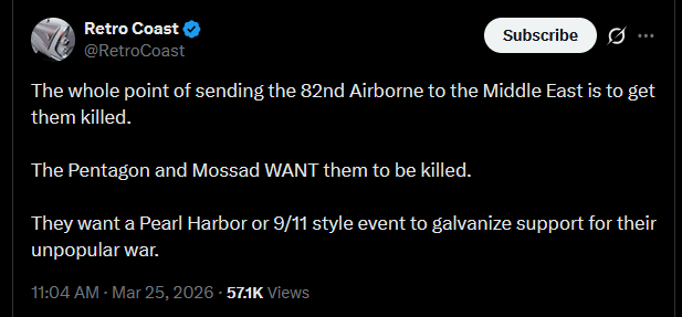 They are deliberately ending these 82nd airbourne to their deaths as a psyop to make the Iran war popular