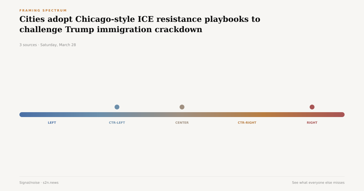 renge-refurion on March 28, 2026 12:11 pm Multiple U.S. cities are adopting resistance strategies modeled on Chicago’s approach to limit cooperation with ICE during the Trump administration’s immigration enforcement push. 3 sources reporting.