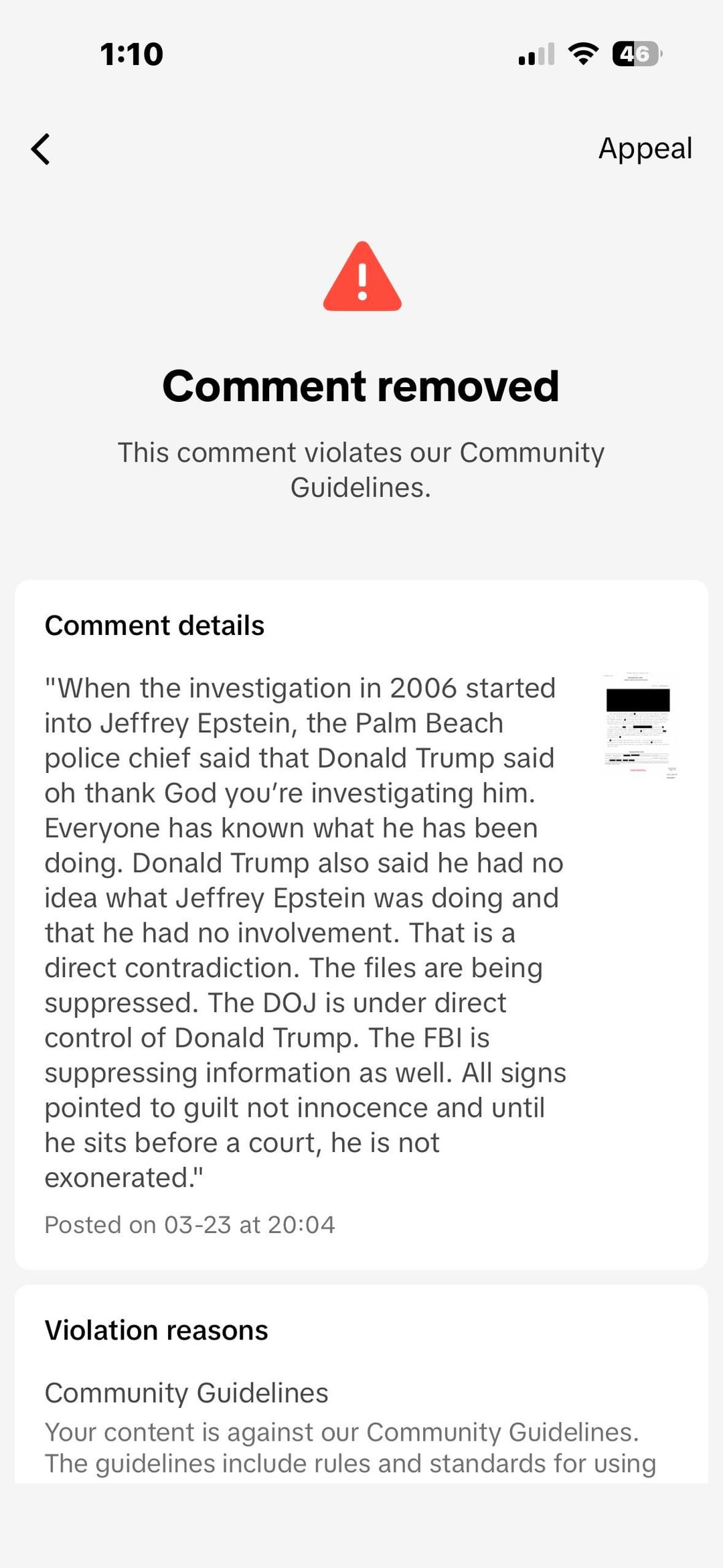 If I blatantly wanted to spread misinformation about the Epstein files, the comments would not be removed.