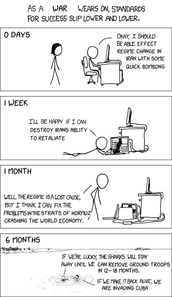 GrafZeppelin127 on March 30, 2026 10:33 pm Who could have guessed. And let us prepare to endure endless screeching that we were *”so close to winning!”* when we finally pull out.