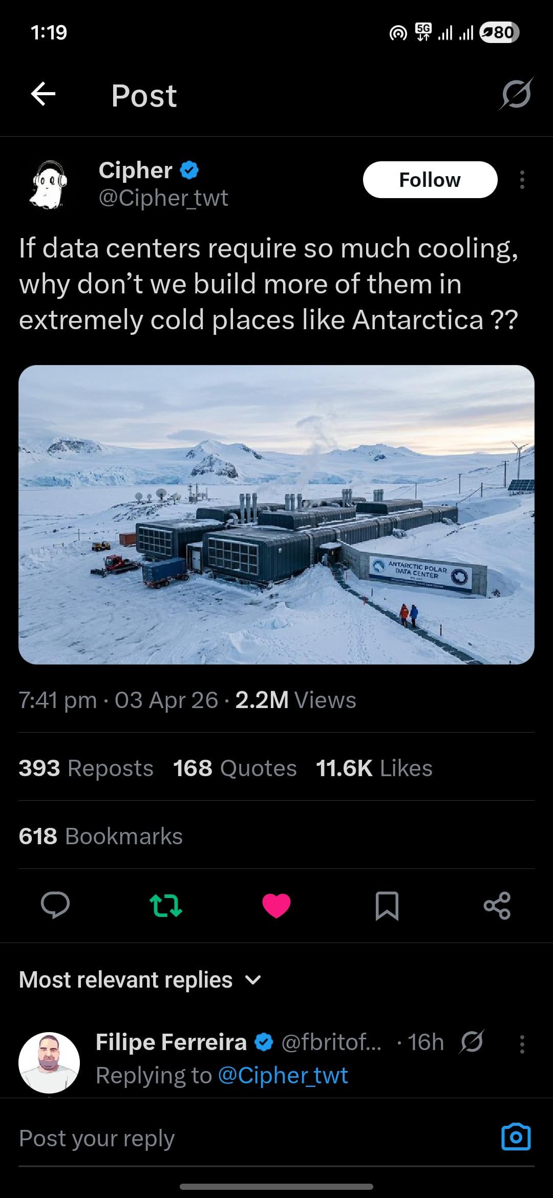 I believe Antarctica is some form of protected land where you are only allowed to do research there (e.g. neutrino detector, wildlife) but it has to be minimally invasive. All the logistics and infrastructure are not minimally invasive. You’ll also have to prove (and then conform to) to the rest of the world that your data centre is for international use research (and probably more than just “researching LLMs).
