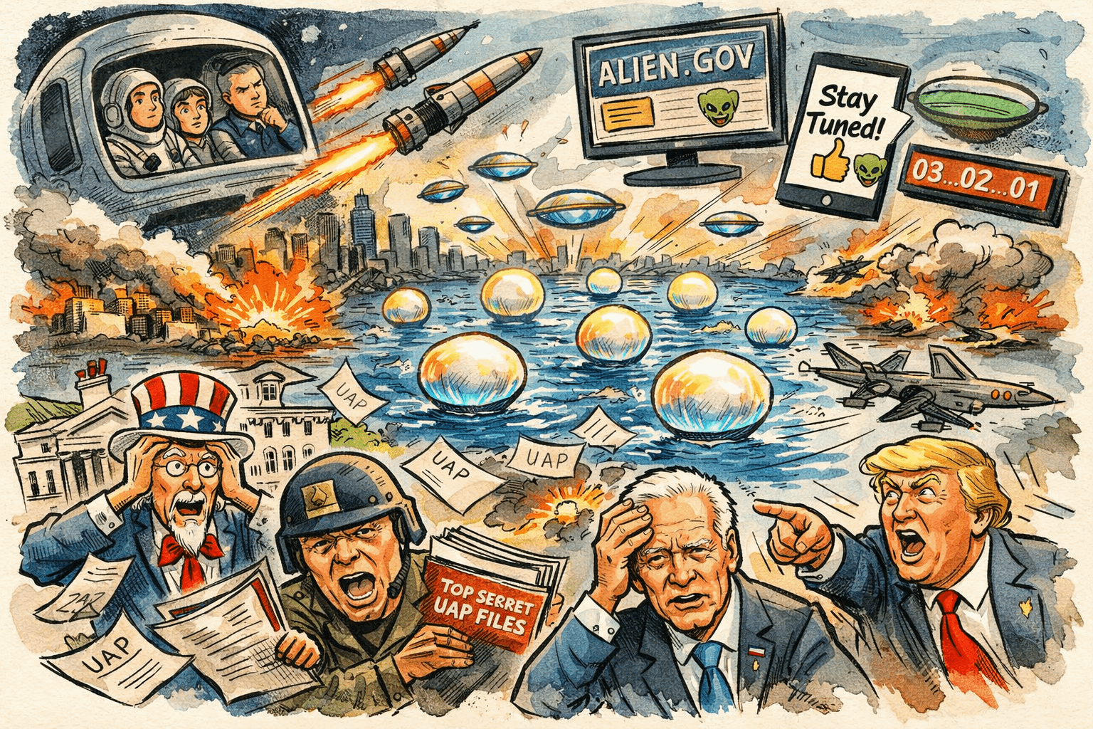 This week: Iran fired four waves of ballistic missiles at Israel on April 1st — the exact opening date of the predicted window. Military sensors across the conflict theatre are tracking objects that don't behave like any known aircraft. The White House registered aliens.gov during a federal funding freeze and responded to press questions with "stay tuned" and an alien emoji. Four NASA astronauts are currently in lunar orbit aboard the most sensor-capable crewed spacecraft ever built. The Secretary of Defense has committed to UAP disclosure.