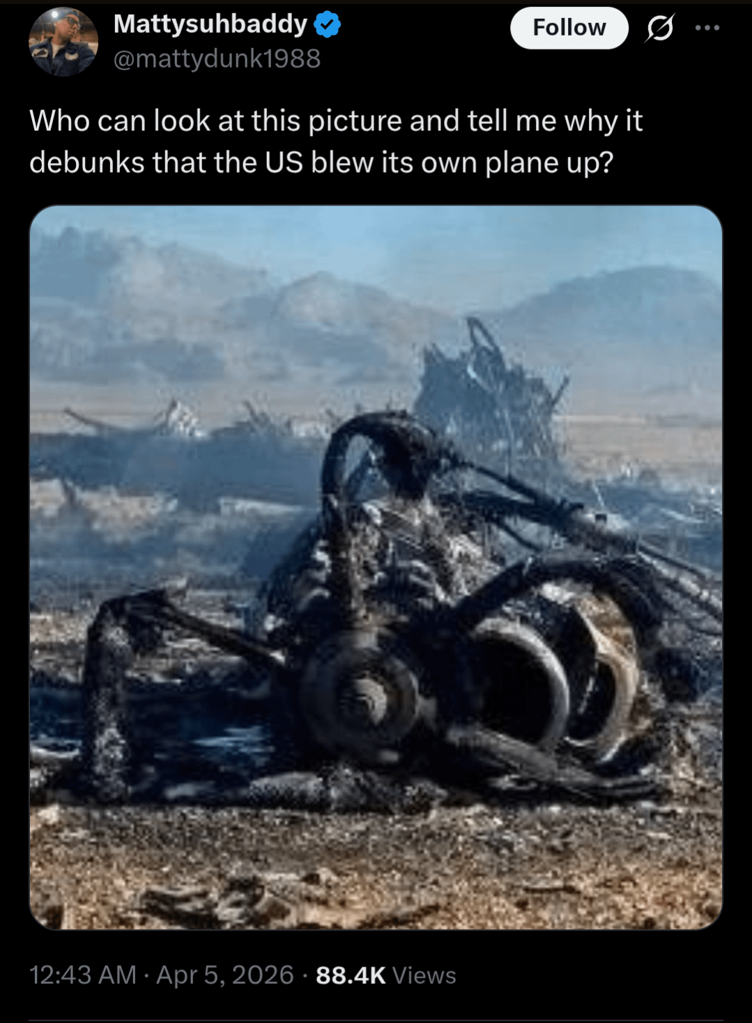 If you look at more pictures, especially ones where you can see the whole aircraft, it’s clear it wasn’t shot down because it’s all in one piece. If it was shot down, then it was able to make a controlled landing.