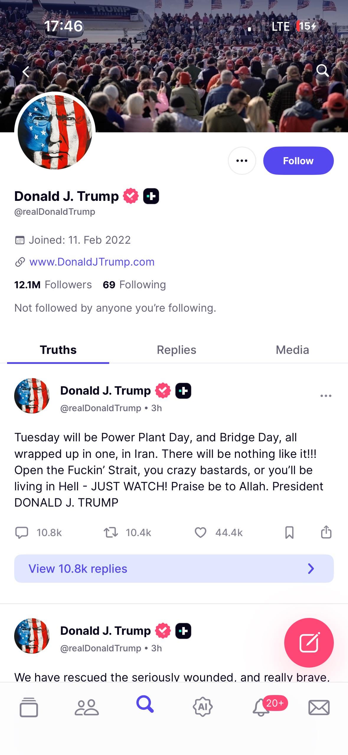 I’ve mentioned this many times before: I hope you all understand that this is not Trump posting these messages. All but promise you that he does not post on any social media account himself