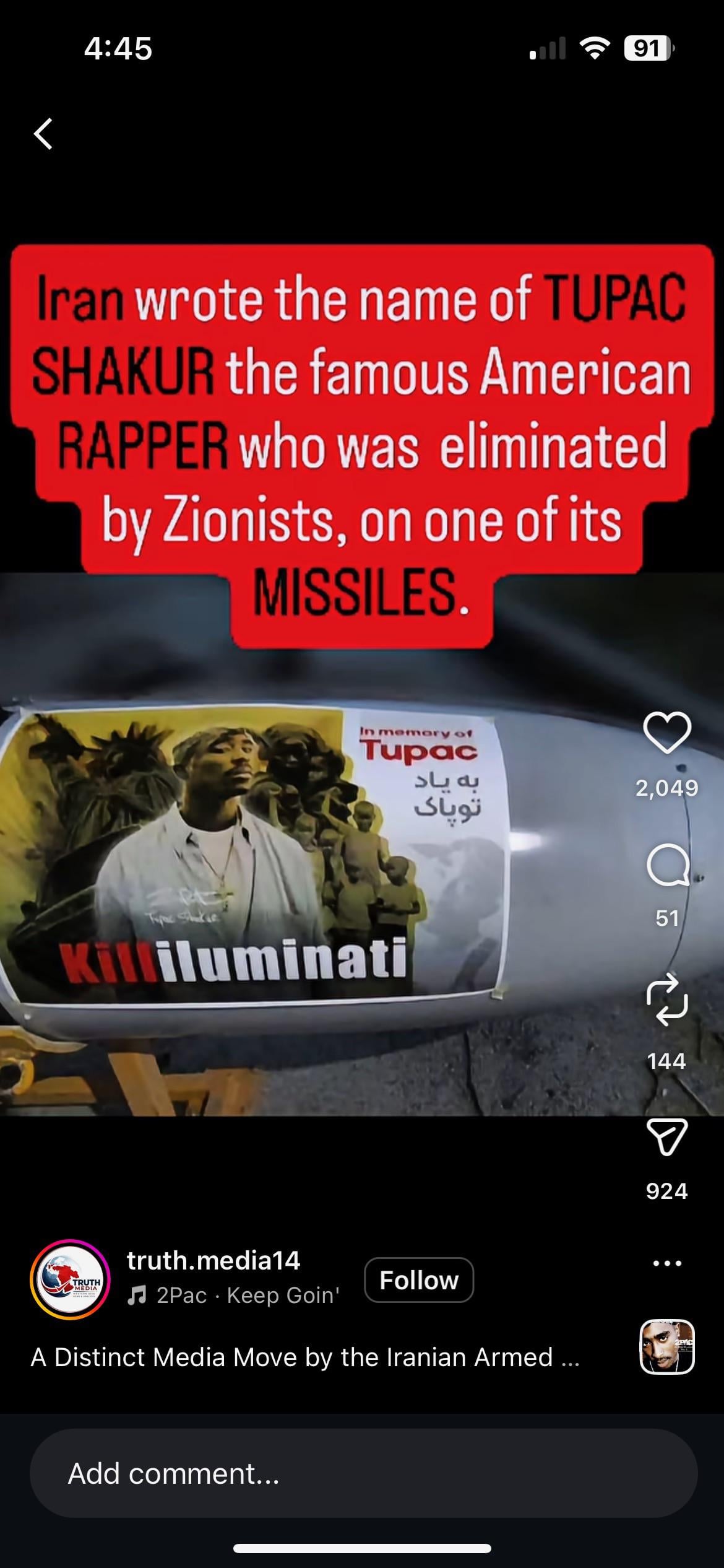 Israel killed Tupac? Lmao what?