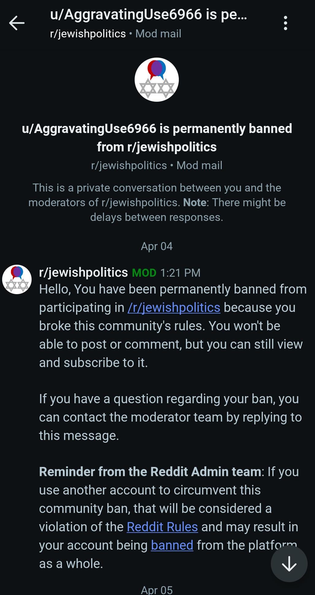 I got banned from Conservative for the same thing.