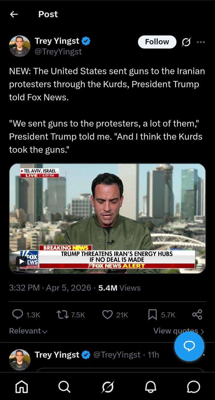 When you admit that the opposition is armed, the “peaceful protester” narrative collapses. It means that one of the main justifications for the war has now been revealed to be propaganda.