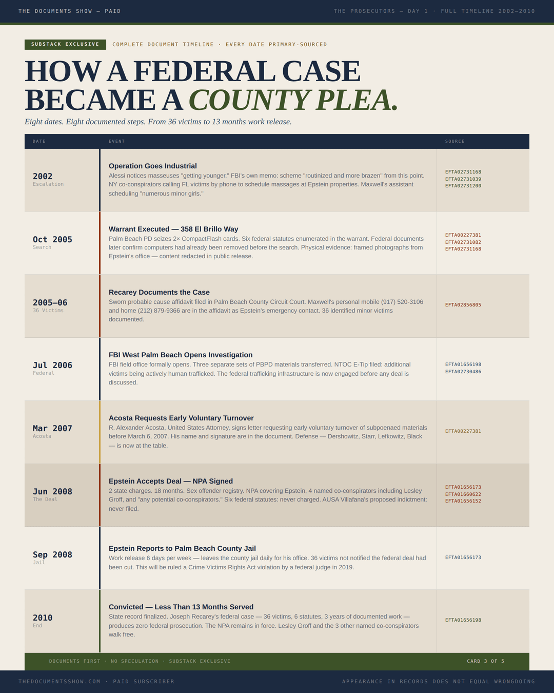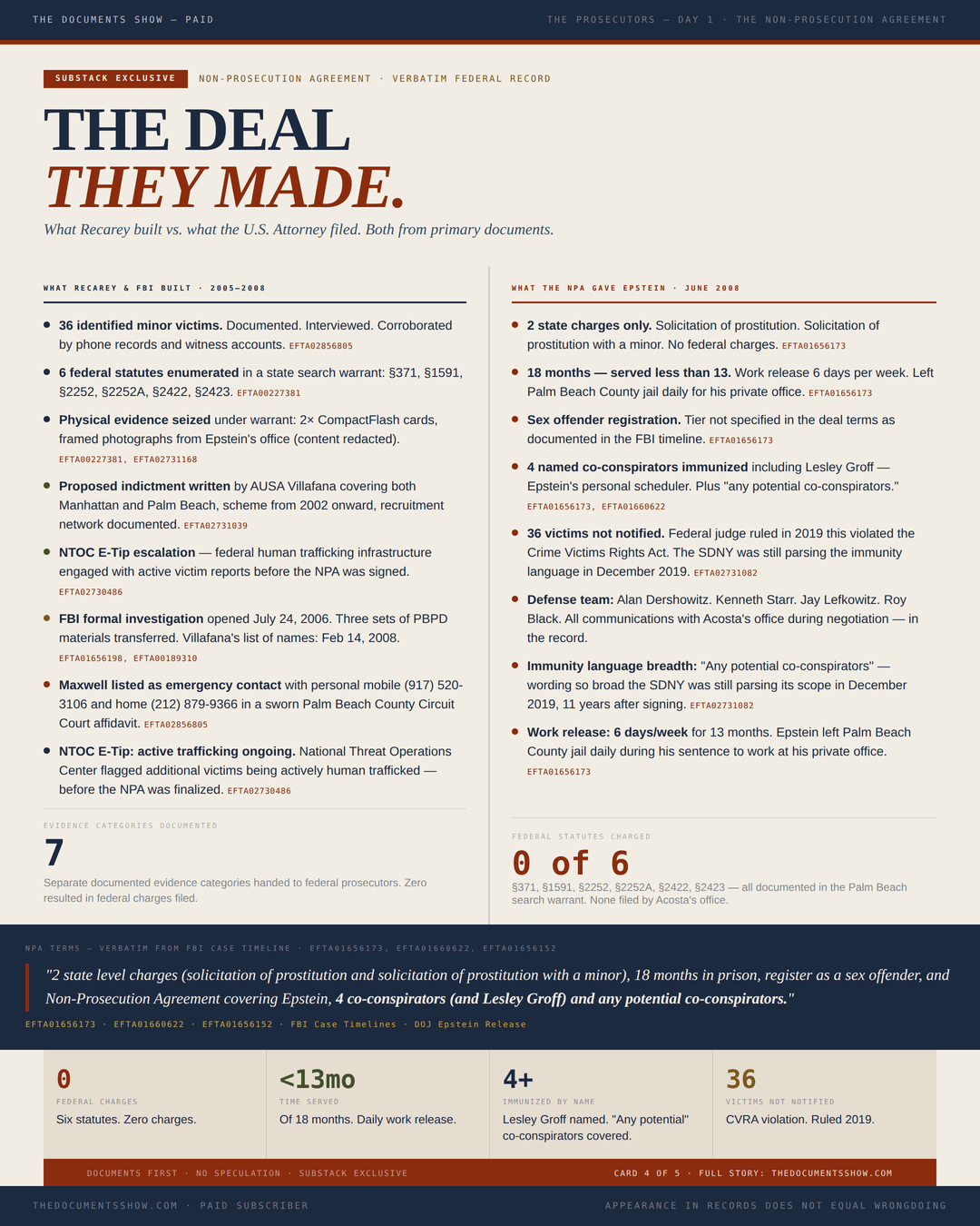 Federal records confirm computers were removed from Epstein’s Palm Beach residence before Palm Beach PD executed their search warrant. The detective who documented 36 minor victims and six federal statutes died in 2018. Zero federal charges filed.