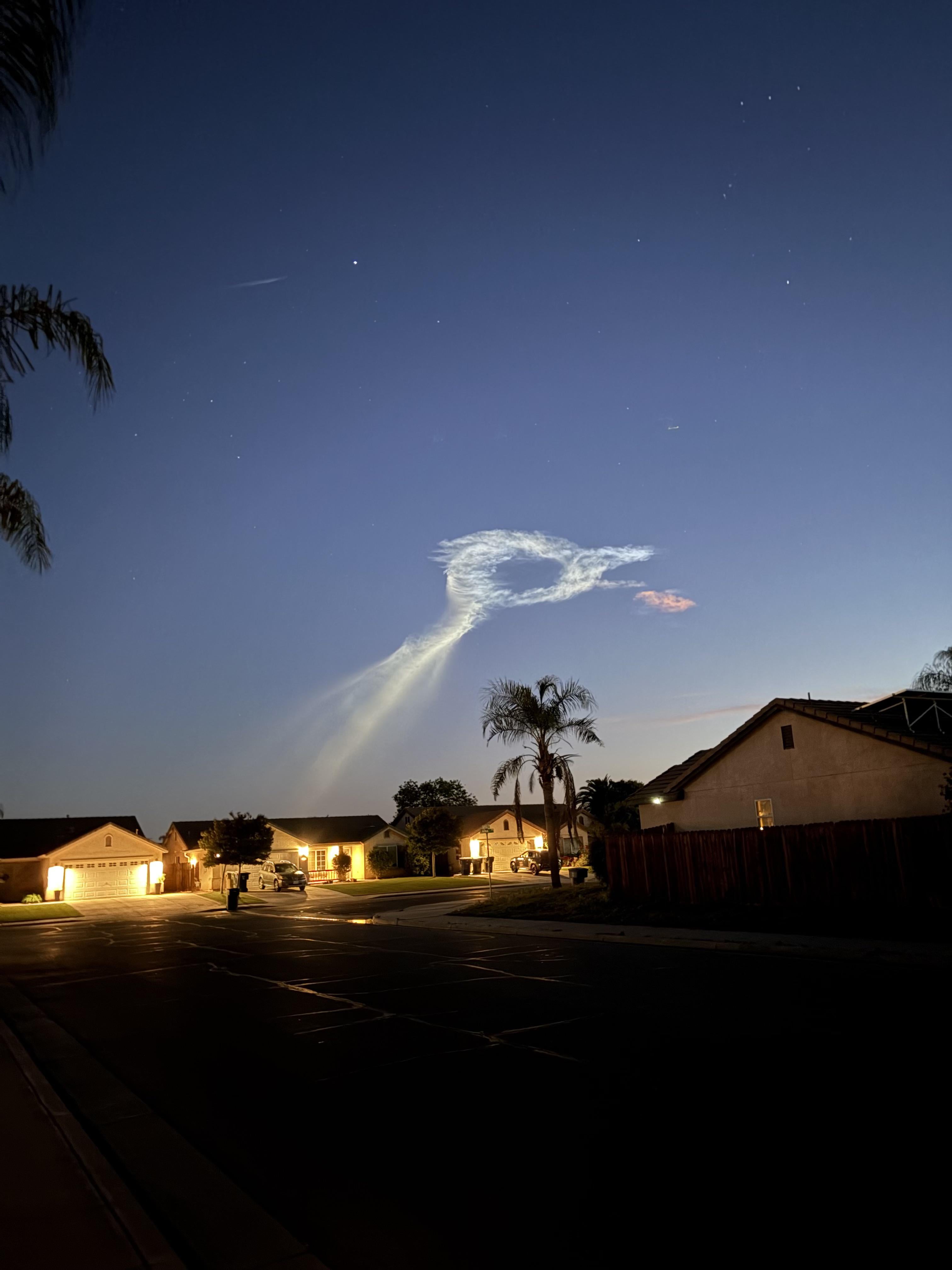 Saw this too. After some research on space x launches it looks like that’s what it is. I almost shit myself at the park seeing it happen in real time. It seemed to be going down though, with its nose tipping up at some point( like it was trying not to fall) before disappearing behind trees.