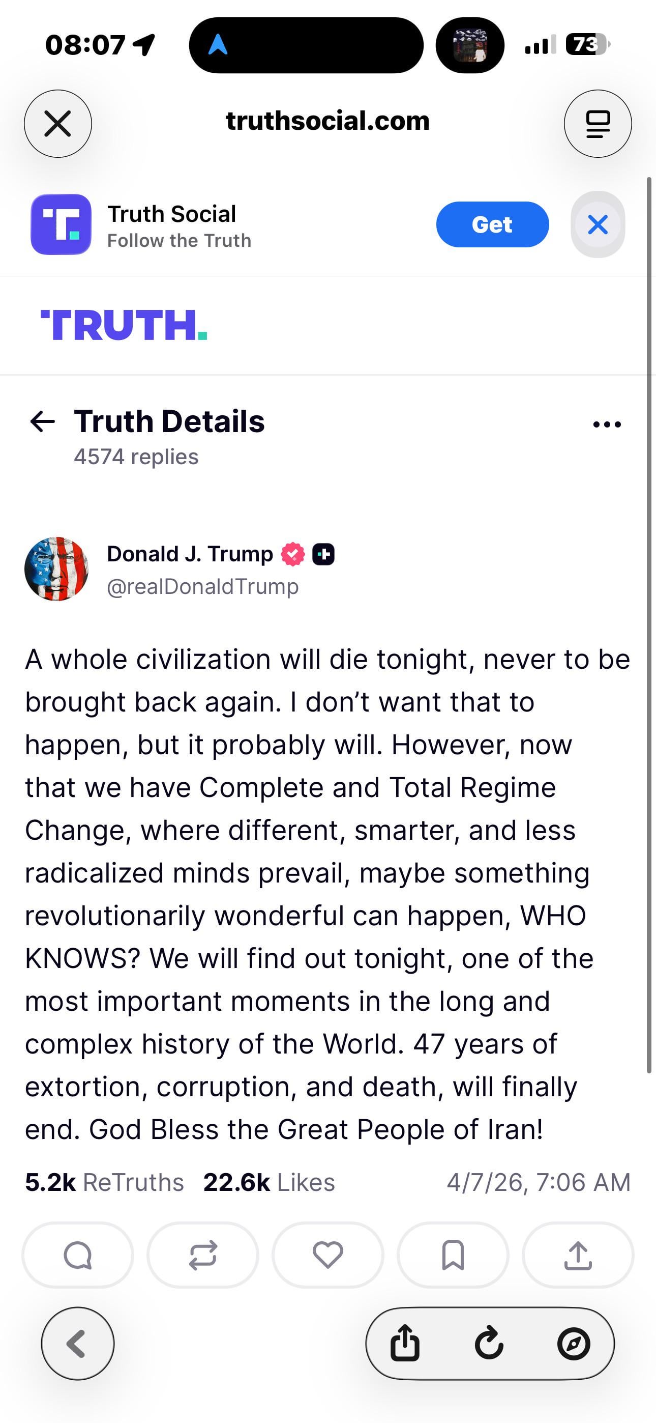Humble_Development38 on April 7, 2026 1:11 pm Yall truly believe this is actually Trump? 🤡 This ain’t him This is someone who personified him from X This is fake news and maybe Truth Social will get a lawsuit for allowing this. Anyone can make this garbage, even with AI