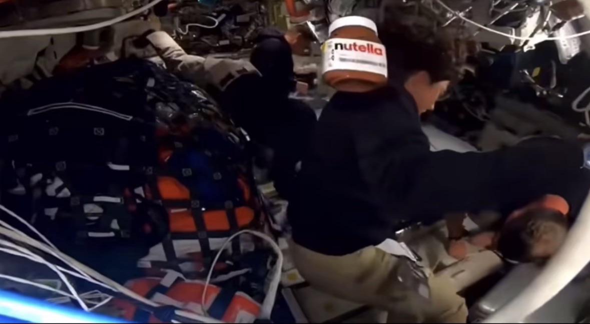 Not only that, but you can see all 4 of the astronauts in this video, which begs the question, who tossed it into frame?