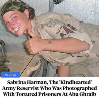 1st pic Australia’s most decorated soldier, 2nd pic US Army in Abu ghraib war crimes, 3rd a 1yo child tortured with cigarettes