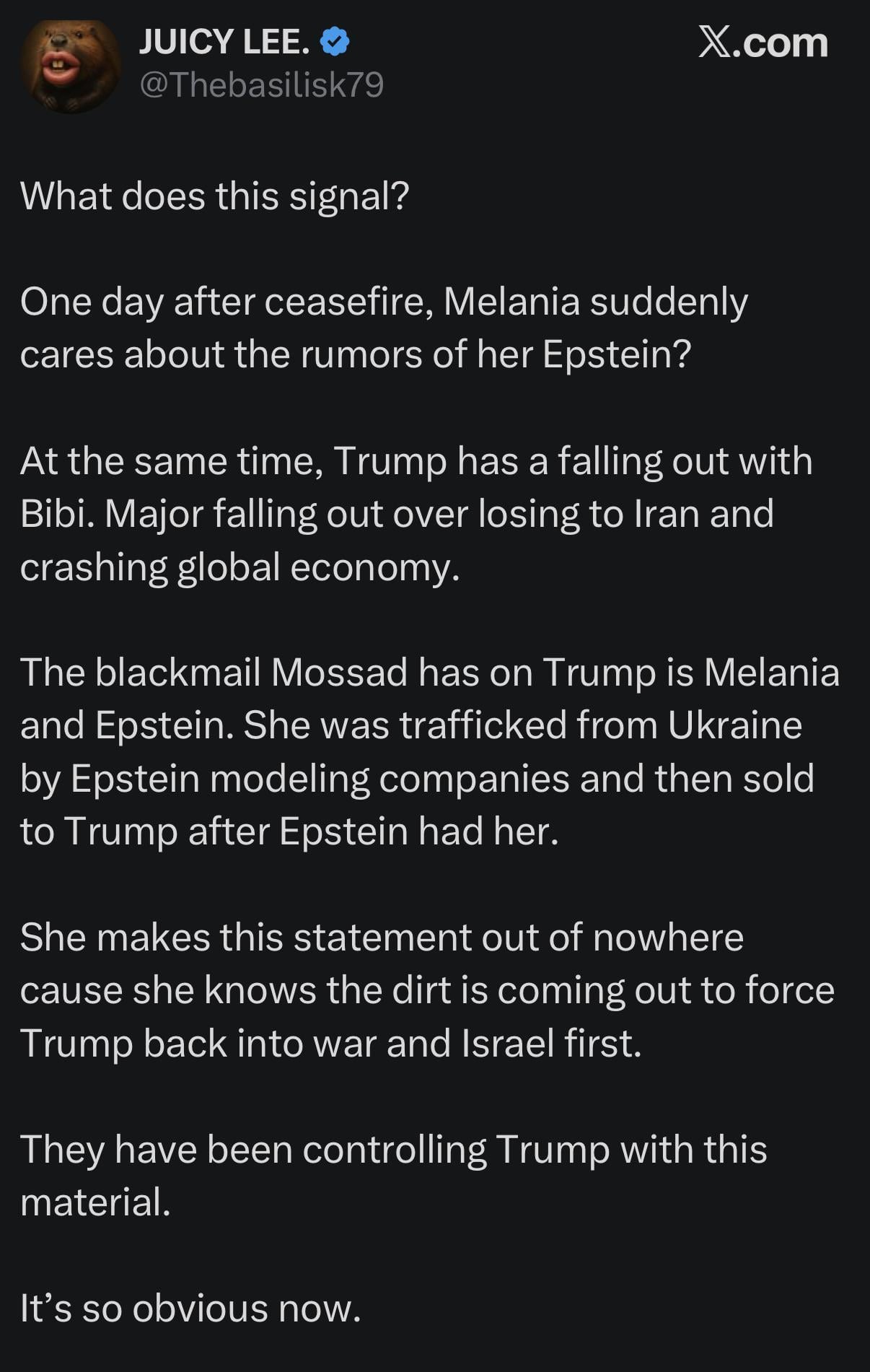 Yeah, I think the war wasn’t about distracting from the files, but rather whoever is using the files as blackmail (Israel) recognizing that time was running out from Trump (either due to the files being fully released or otherwise) and they had to cash in their chips now.